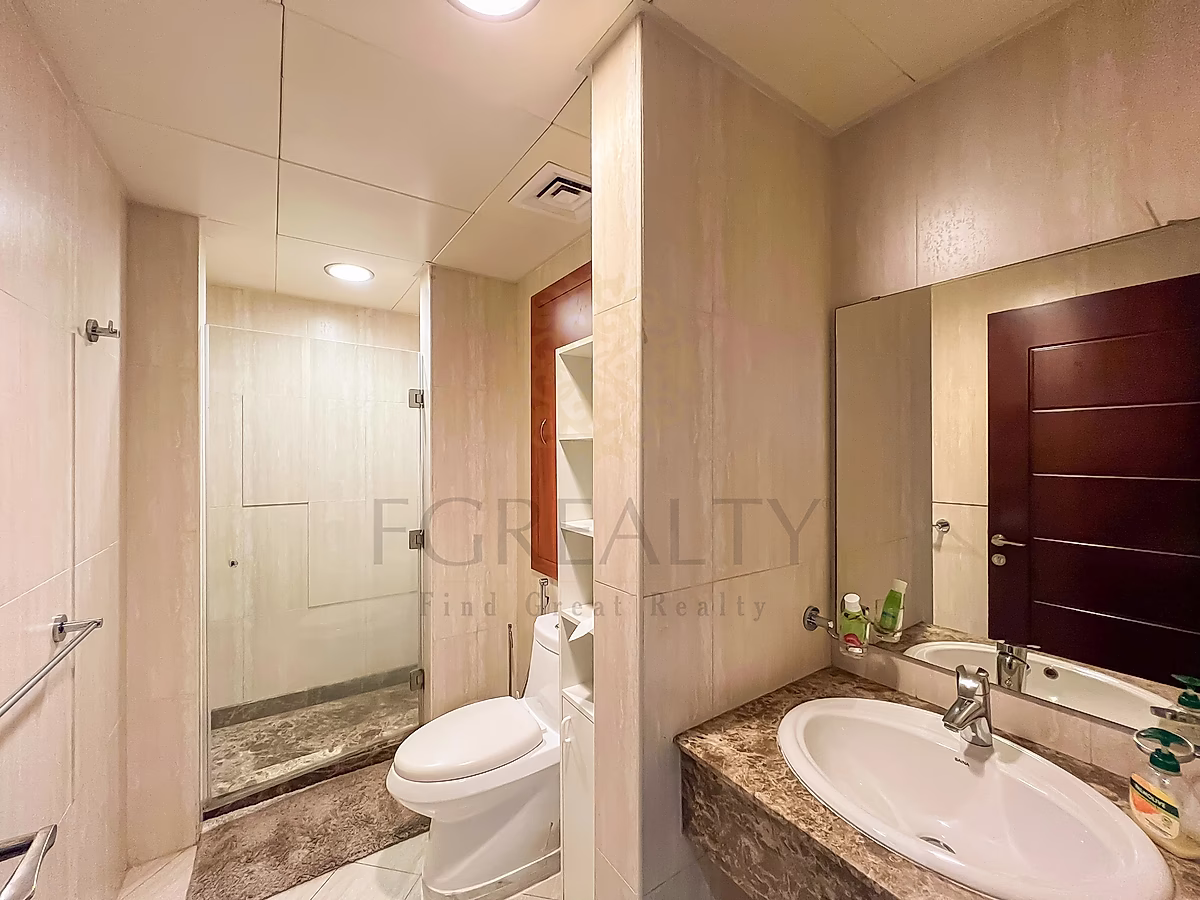 - حمام معد بشكل أنيق يتميز بتركيبات حديثة وتشطيبات رائعة.