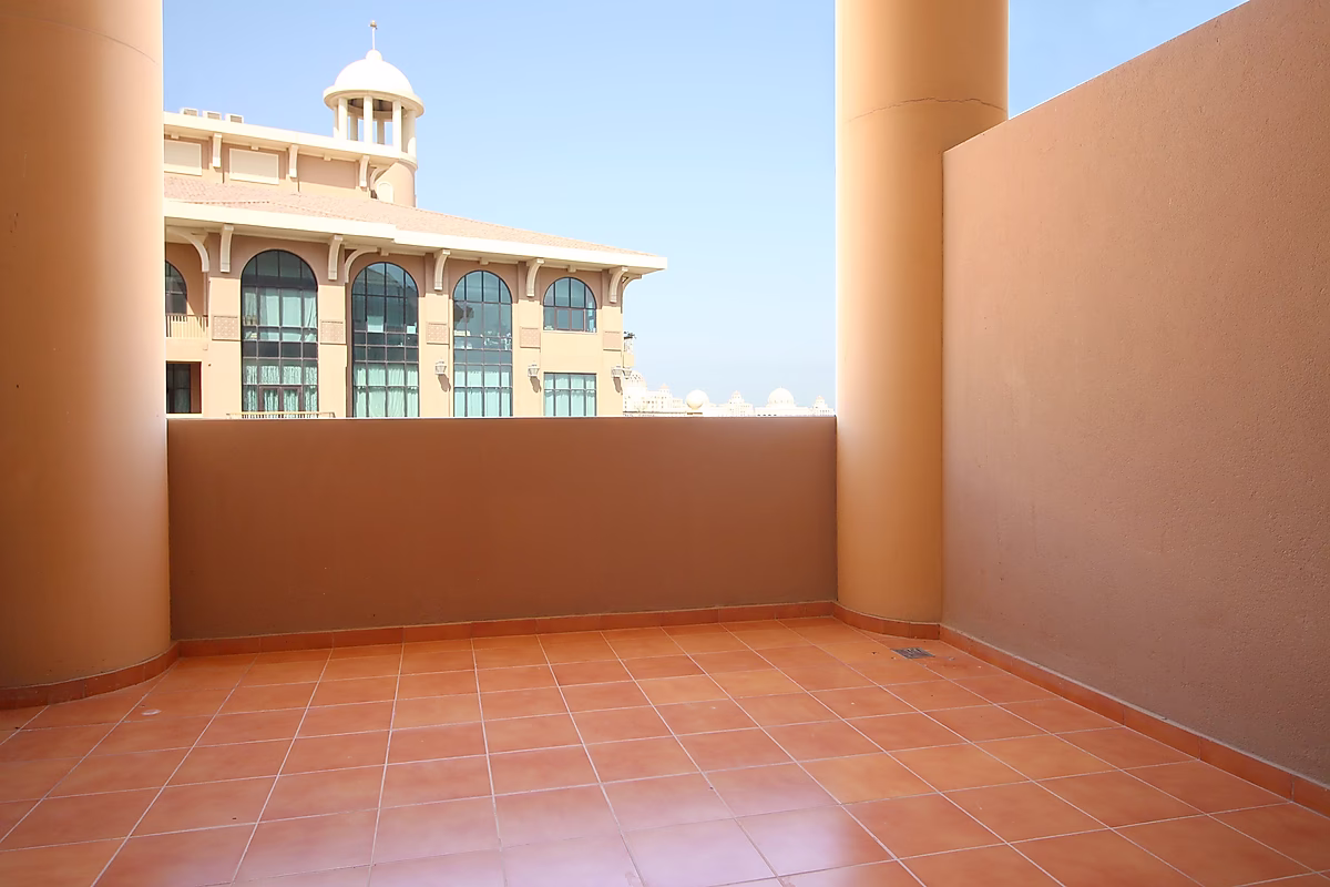 - الوصول إلى شرفة كبيرة على السطح