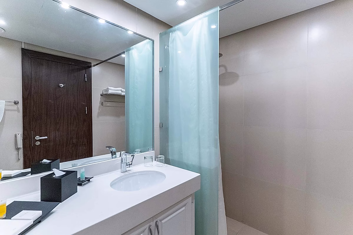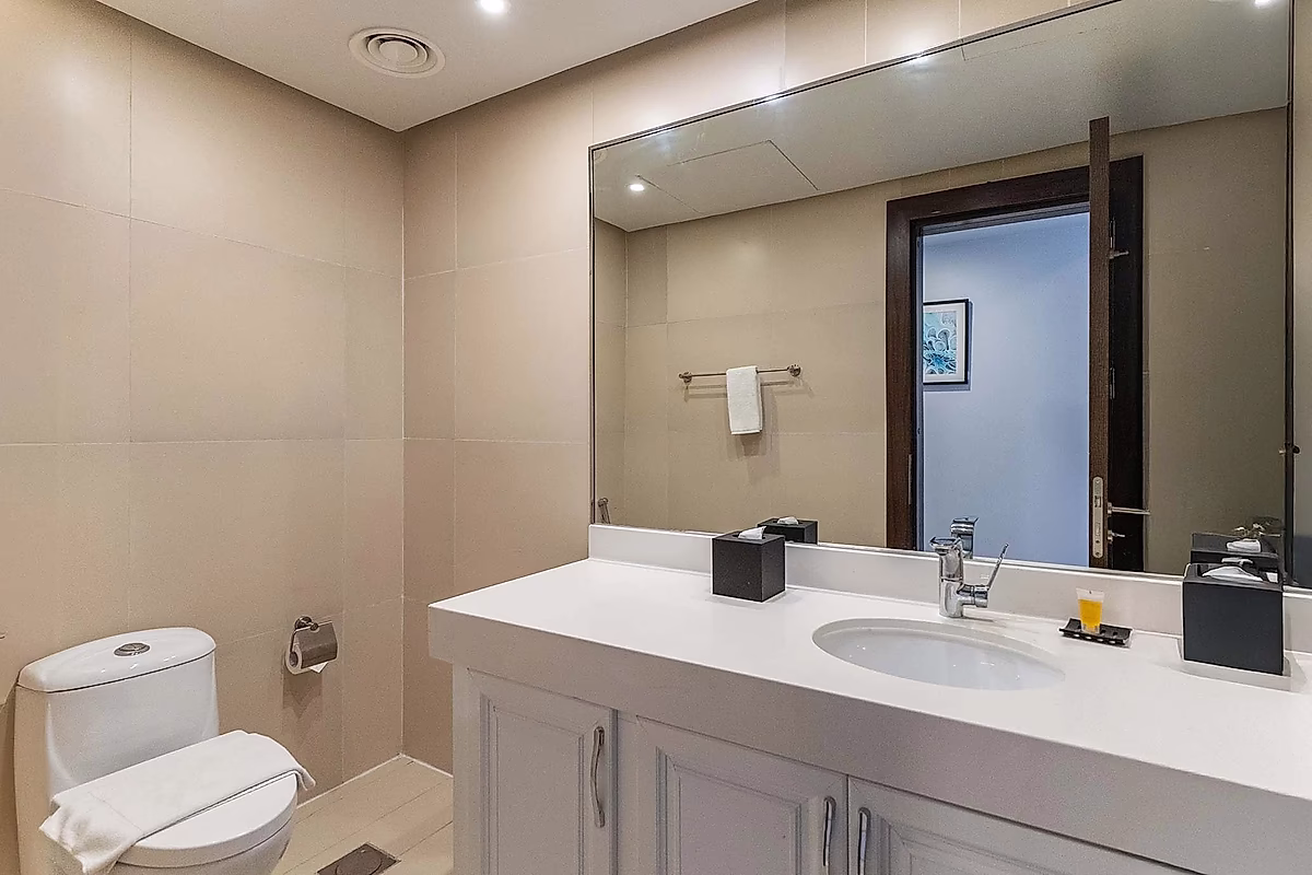 حمامات أنيقة: مزودة بتجهيزات فاخرة ولمسات نهائية عالية الجودة لتمنحك تجربة استرخاء تشبه المنتجعات.