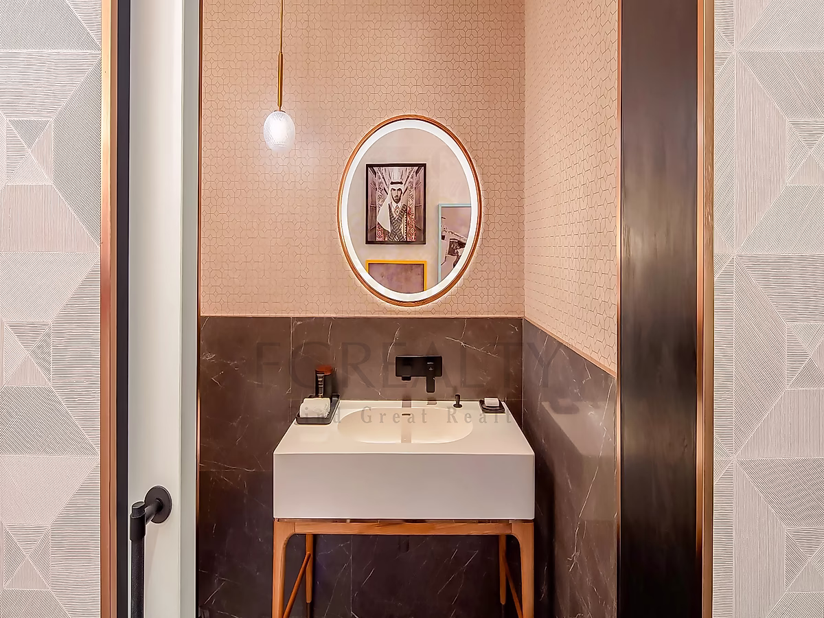 - حمام أنيق بتجهيزات عصرية وتصميم أنيق