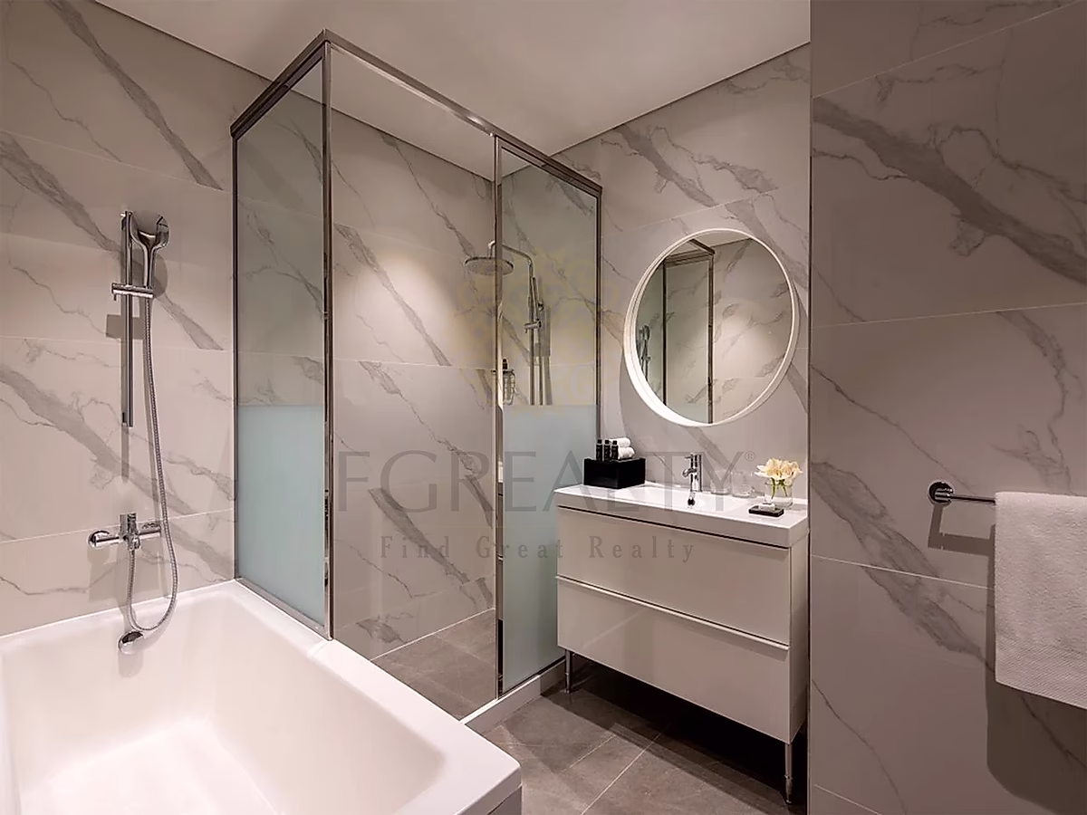 • حمام فاخر يتميز بتركيبات مصممة وحمام مطري