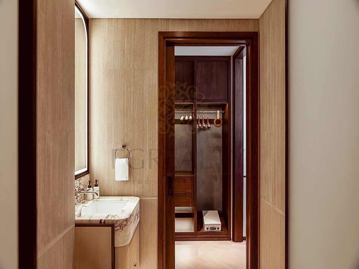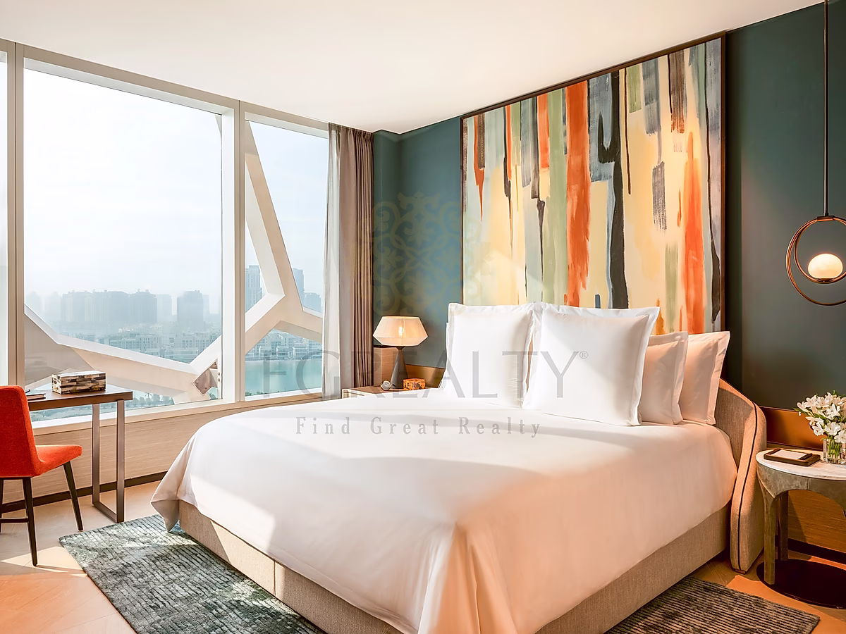تضم غرفة النوم الرئيسية سريرًا ملكيًا، غرفة ملابس، وحمامًا خاصًا بمغسلتين، دش مطري، وحوض استحمام. كما تحتوي الغرفة الثانية على خيارات نوم مرنة، وحمام خاص، ومساحات تخزين واسعة. وتتكامل الصالة الواسعة مع منطقة طعام تتسع لستة أشخاص ومطبخ مجهز بالكامل بأجهزة حديثة وثلاجة مشروبات.