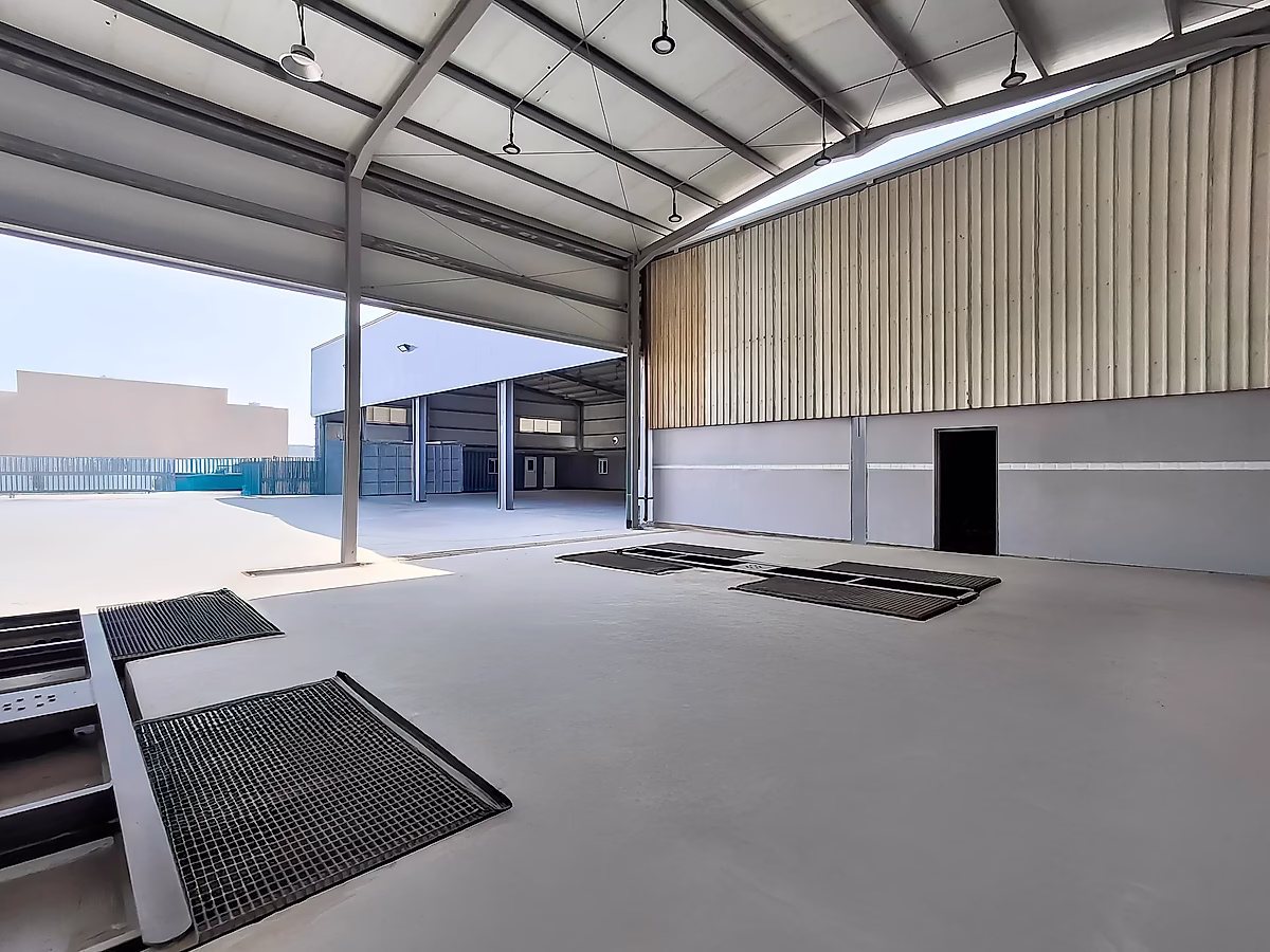 يحتوي العقار على ورشة واسعة بمساحة ١,٣٩٠ متر مربع، مثالية لإصلاح وصيانة المركبات، ومبنى إداري بمساحة ٢٧٠ متر مربع لدعم المهام الإدارية والتشغيلية، وغرفة حراسة بمساحة ٢٠ متر مربع لضمان الأمن. تم تصميم المرآب لتحمل الاستخدام المكثف، مع طرق دخول واسعة مناسبة للشاحنات والحافلات الكبيرة، مواد بناء قوية، وتصميم داخلي مرن لتلبية احتياجات الأعمال المتنوعة.