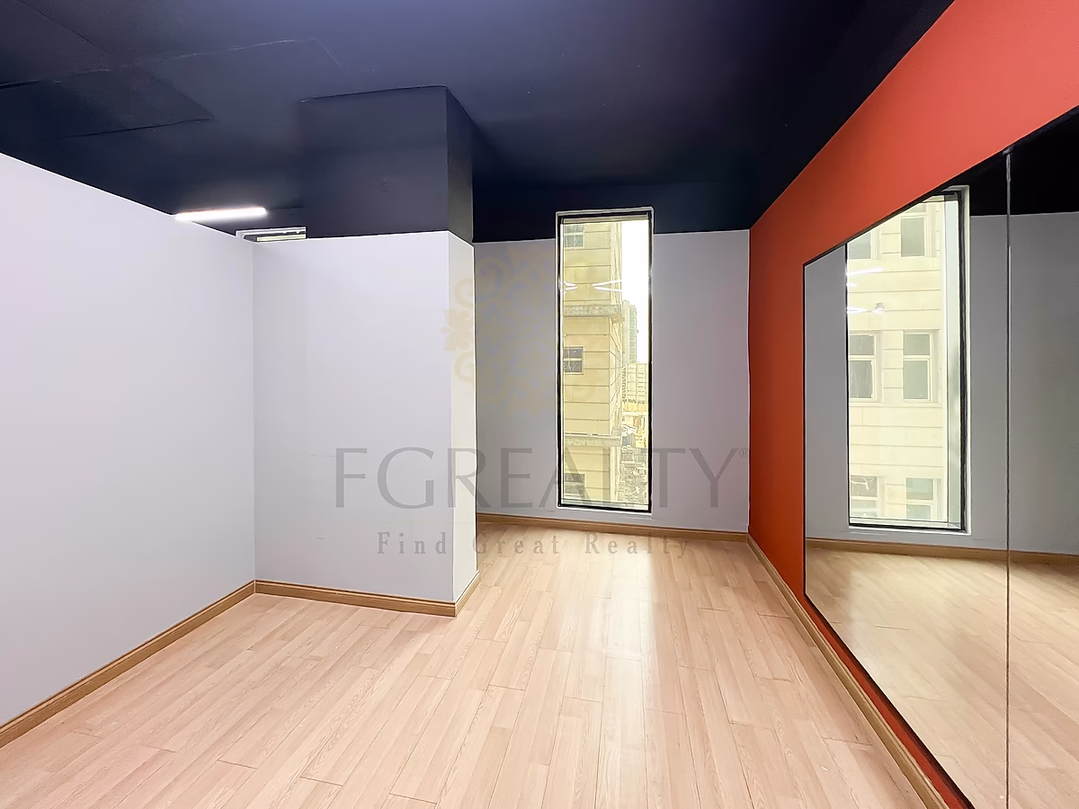 يأتي المكتب مجهزًا بالكامل بتشطيبات عالية الجودة، ويتميز بإضاءة جيدة، أسقف مرتفعة، وإضاءة إضافية ملونة تضفي أجواءً عصرية وجذابة. كما يضم تقسيمات داخلية عملية، مرايا كبيرة، ومنطقة استقبال، مما يجعله مناسبًا بشكل مثالي لنادٍ رياضي نسائي، استوديو بيلاتس، مركز لياقة أو أي نشاط مشابه.