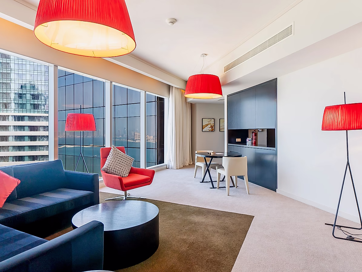 استمتع بأسلوب حياة فندقي فاخر مع إمكانية الوصول إلى مركز لياقة بدنية متطور، ومسبح إنفينيتي أنيق، وتجارب طعام عالمية – كل ذلك على بُعد خطوات من باب منزلك. تقع هذه الوحدة في قلب مدينة الدوحة، مما يضعك بالقرب من أبرز المعالم السياحية، والمراكز التجارية، والمرافق الثقافية في المدينة.