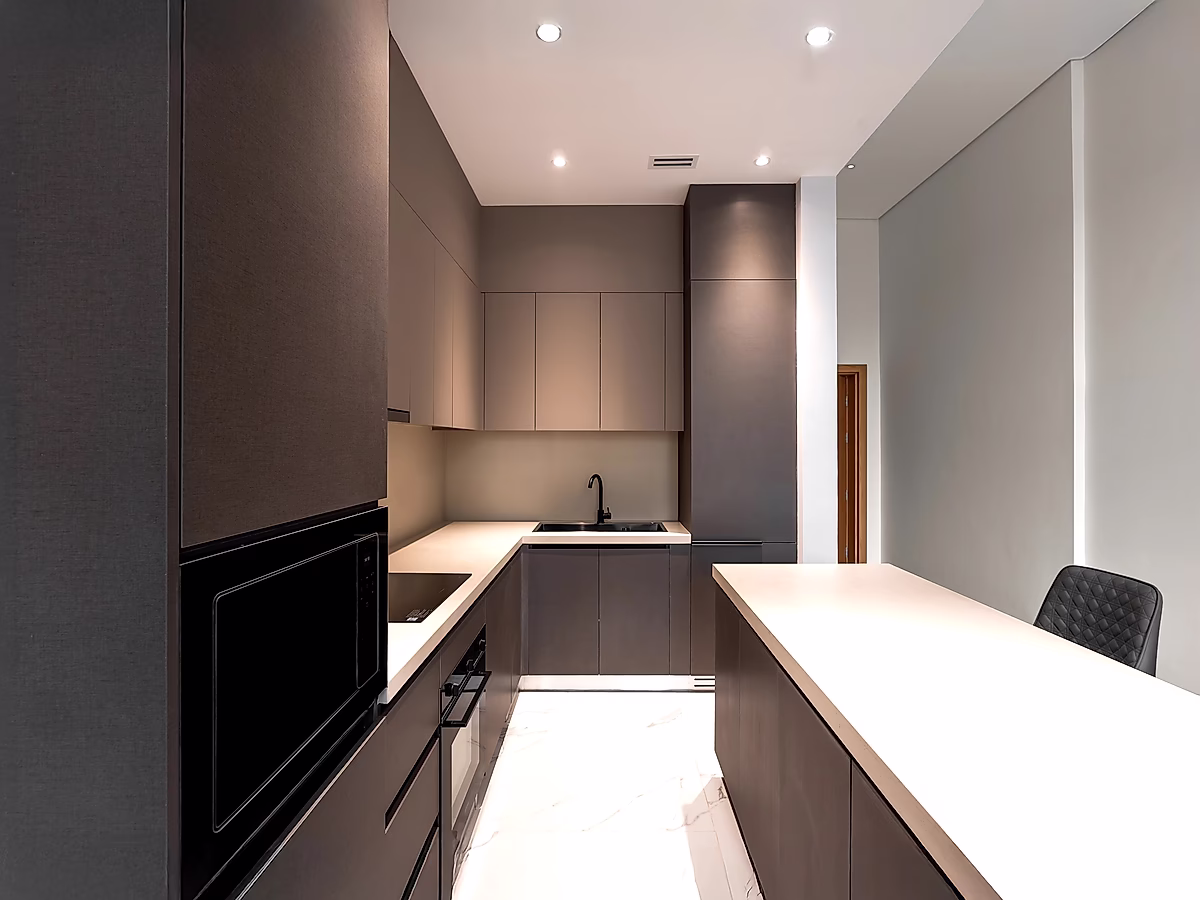 مطبخ عصري بتصميم أنيق وأجهزة مدمجة