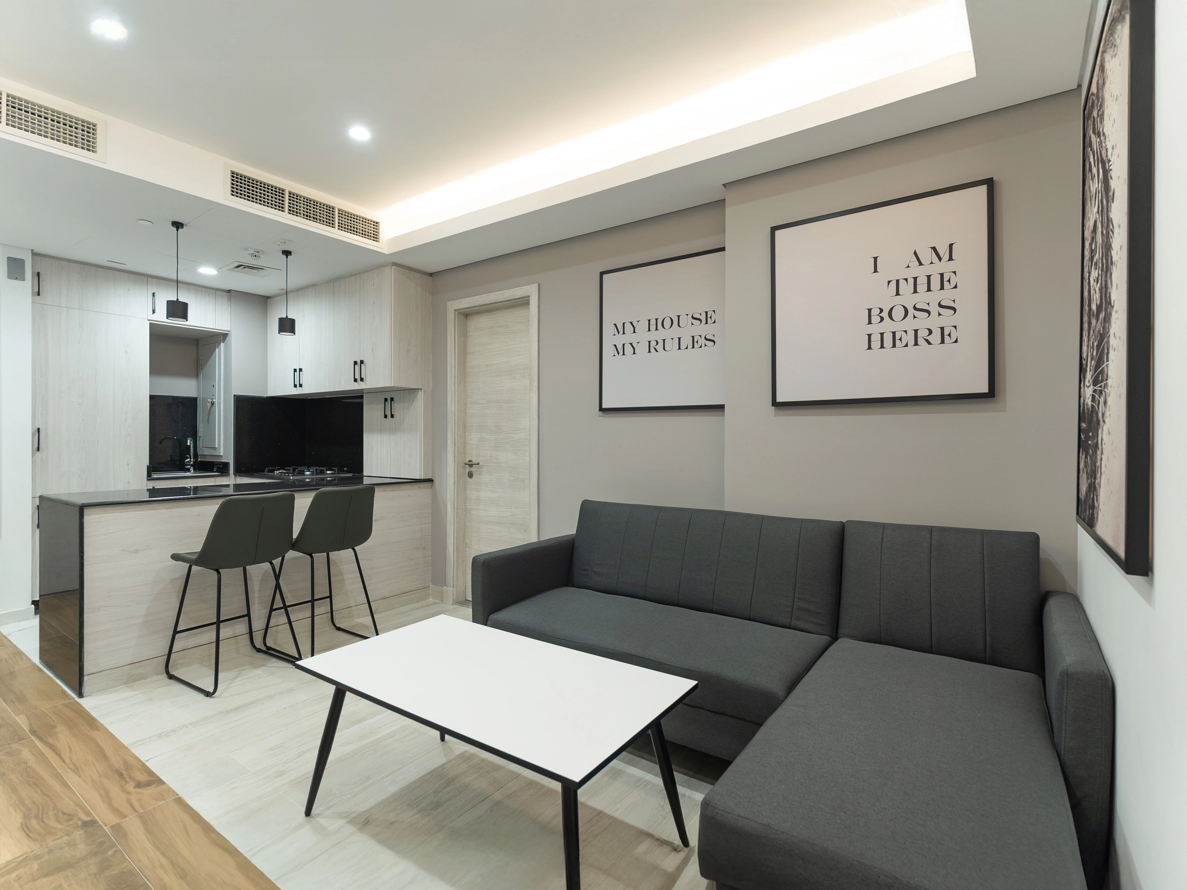 عِش تجربة الراحة والحداثة في هذا الشقة الجديدة بالكامل والمفروشة بالكامل بغرفة نوم واحدة في موقع مميز في لوسيل الركية، مقابل استاد لوسيل مباشرةً. تم تصميم الشقة بذوق عالٍ وبلمسات عصرية، مع سهولة الوصول إلى وسائل النقل العامة.