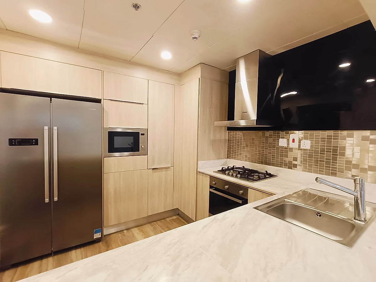 يتميز المطبخ بالأجهزة الأساسية، بما في ذلك الثلاجة، والموقد، والميكروويف، بالإضافة إلى مساحة كافية على الطاولة لتحضير الوجبات. كما تتوفر منطقة طعام مريحة لتناول الطعام والاستمتاع بالإطلالة.