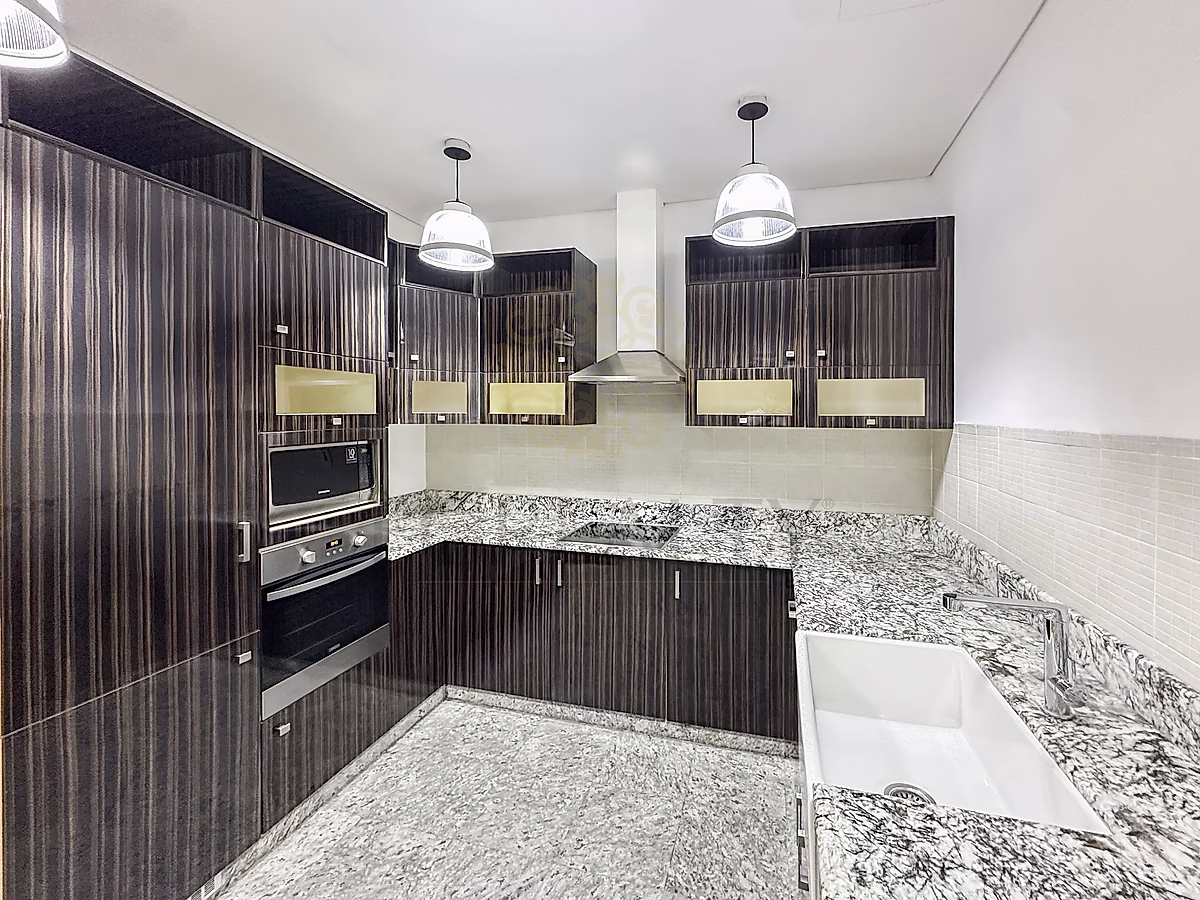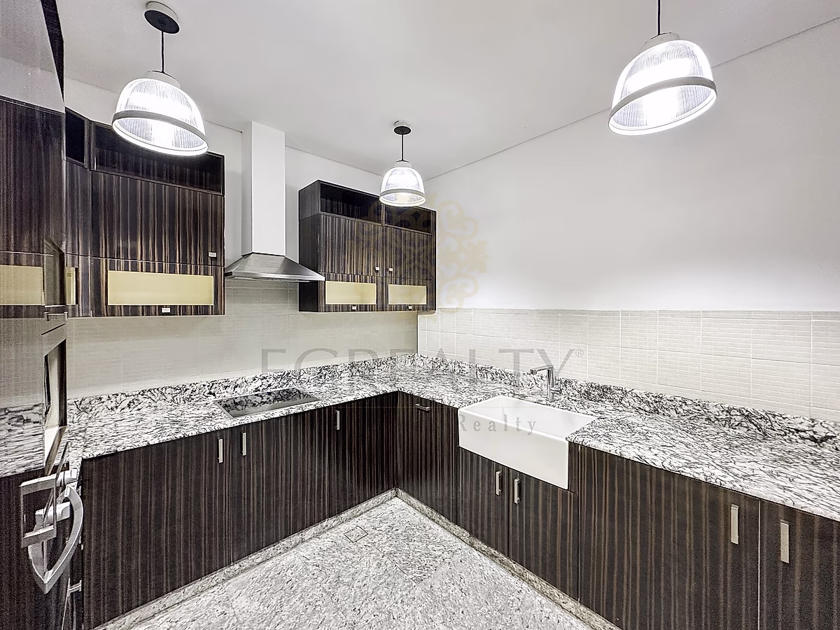 - مطبخ مصمم يتميز بتشطيبات فاخرة ومساحة تخزين كافية