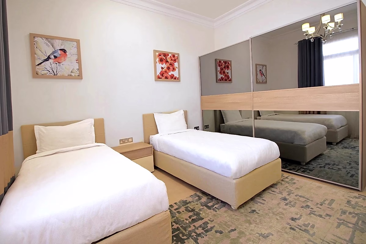 غرفتا نوم مع حمامات (سرير مزدوج كبير وسريرين مفردين)