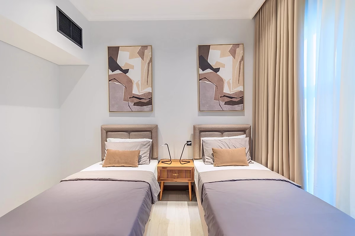 - تصميم واسع من غرفتي نوم مع خزائن مدمجة