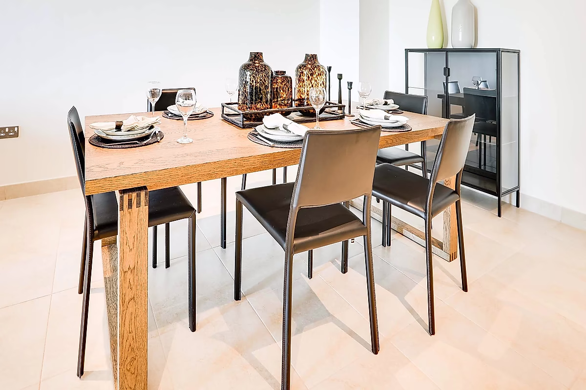 تصميم واسع: غرفتا نوم كبيرتان الحجم مع حمامات داخلية، ومنطقة معيشة مشرقة، ومساحة لتناول الطعام مصممة للراحة والأناقة.