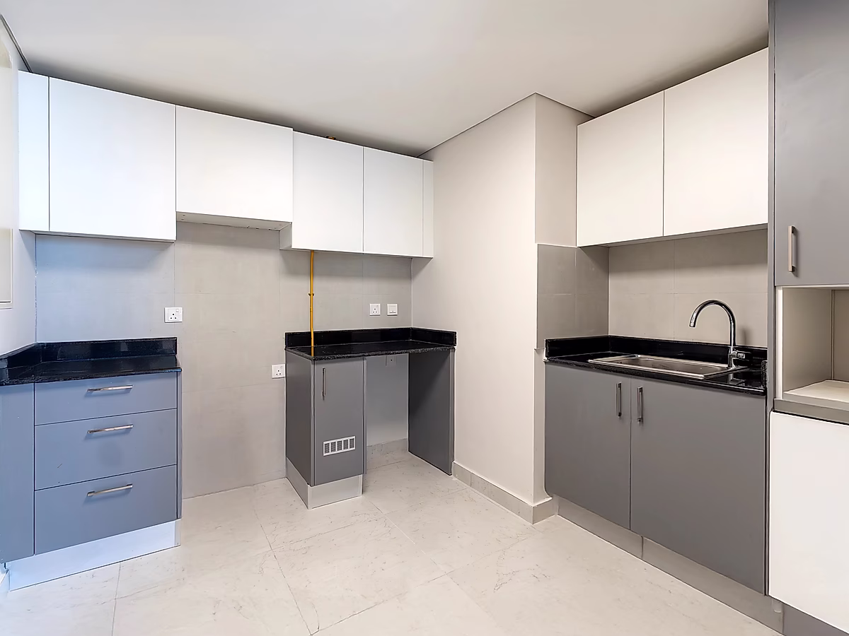 مطبخ مجهز بالكامل بخزائن وتشطيبات عالية الجودة