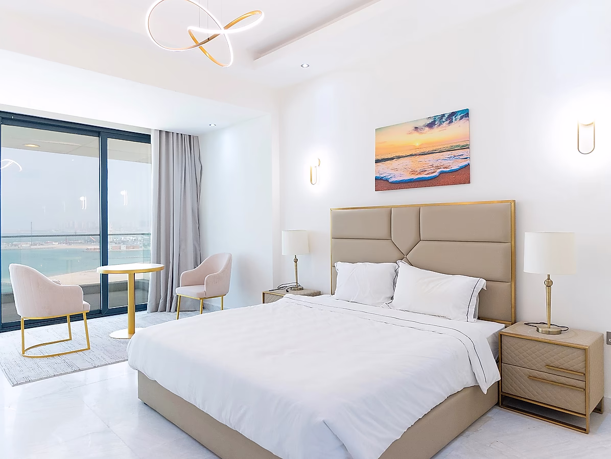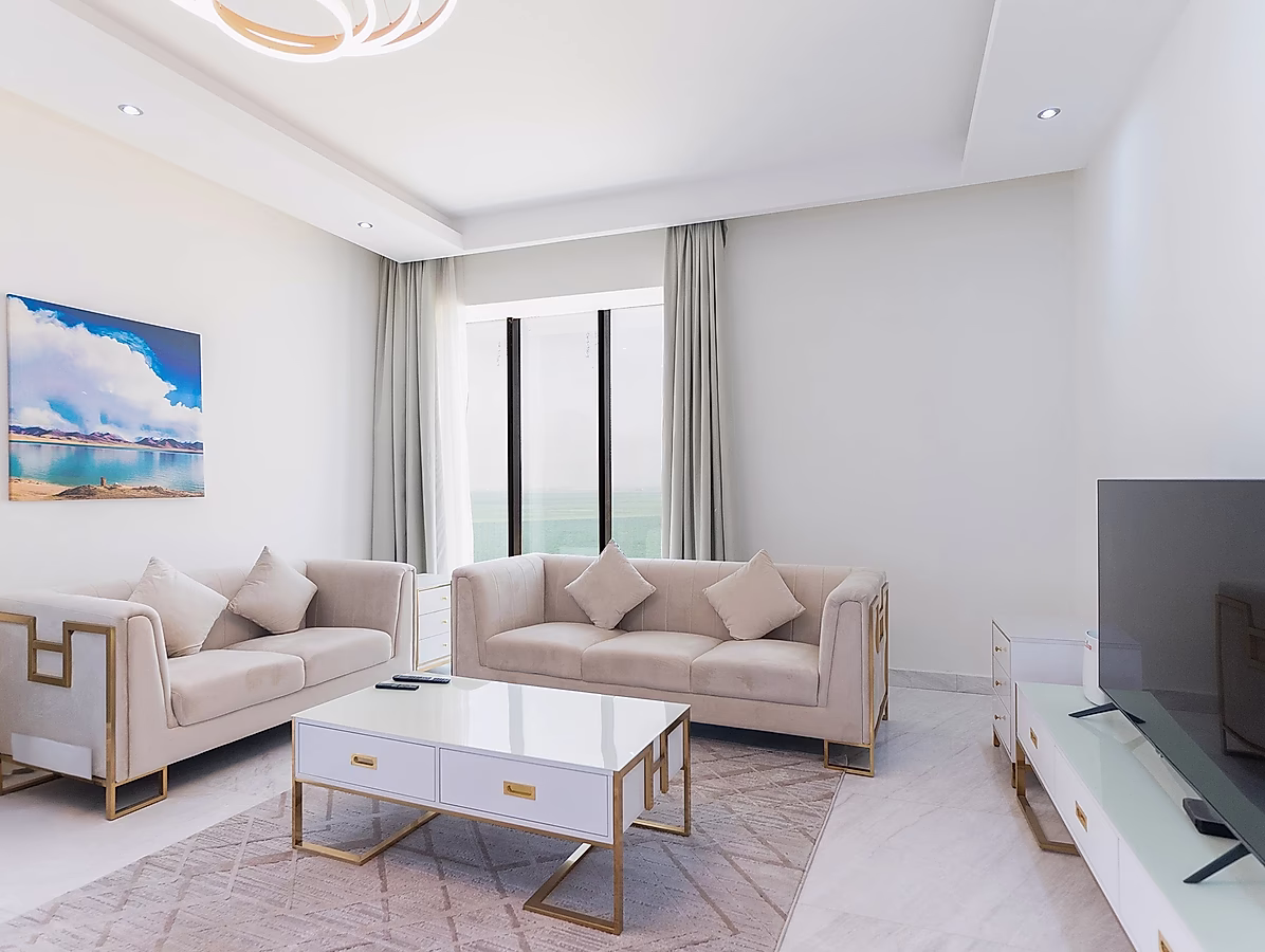 شقة فاخرة مطلة على البحر | غرفتان نوم مفروشة في مدينة الترفيه