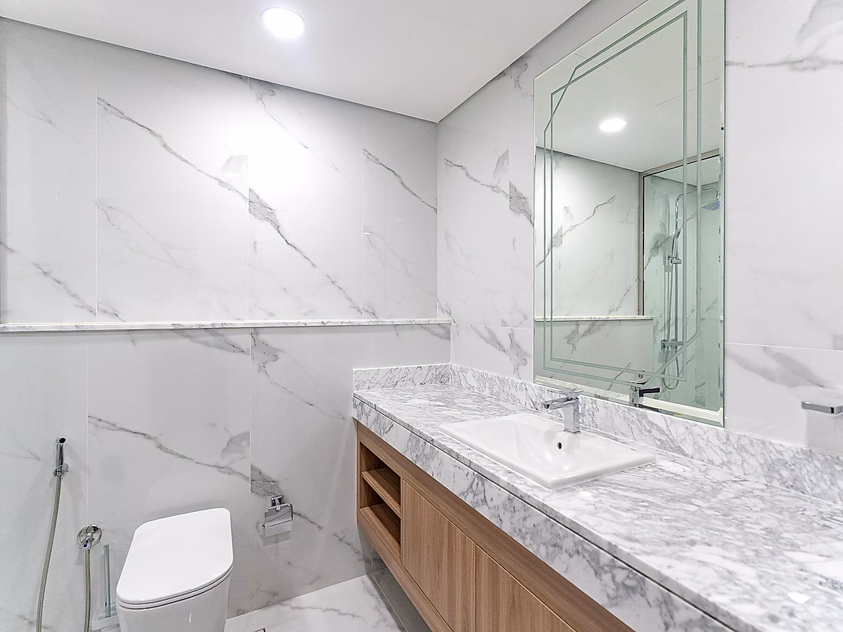 غرف نوم خاصة بلمسات ناعمة يضم الجناح الرئيسي حمامًا داخليًا أنيقًا ومساحات تخزين مريحة، بينما توفر الغرفة الثانية مرونة مثالية للضيوف أو العمل من المنزل.