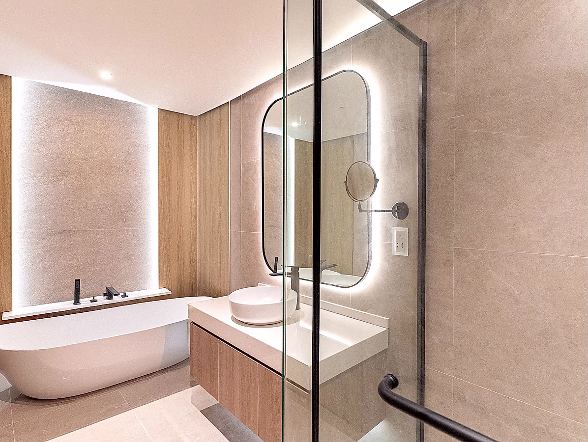 شقة فاخرة من غرفتين وصالة، 3 حمامات، بإطلالة مباشرة على البحر ووصول مباشر – لوسيل ووترفرونت