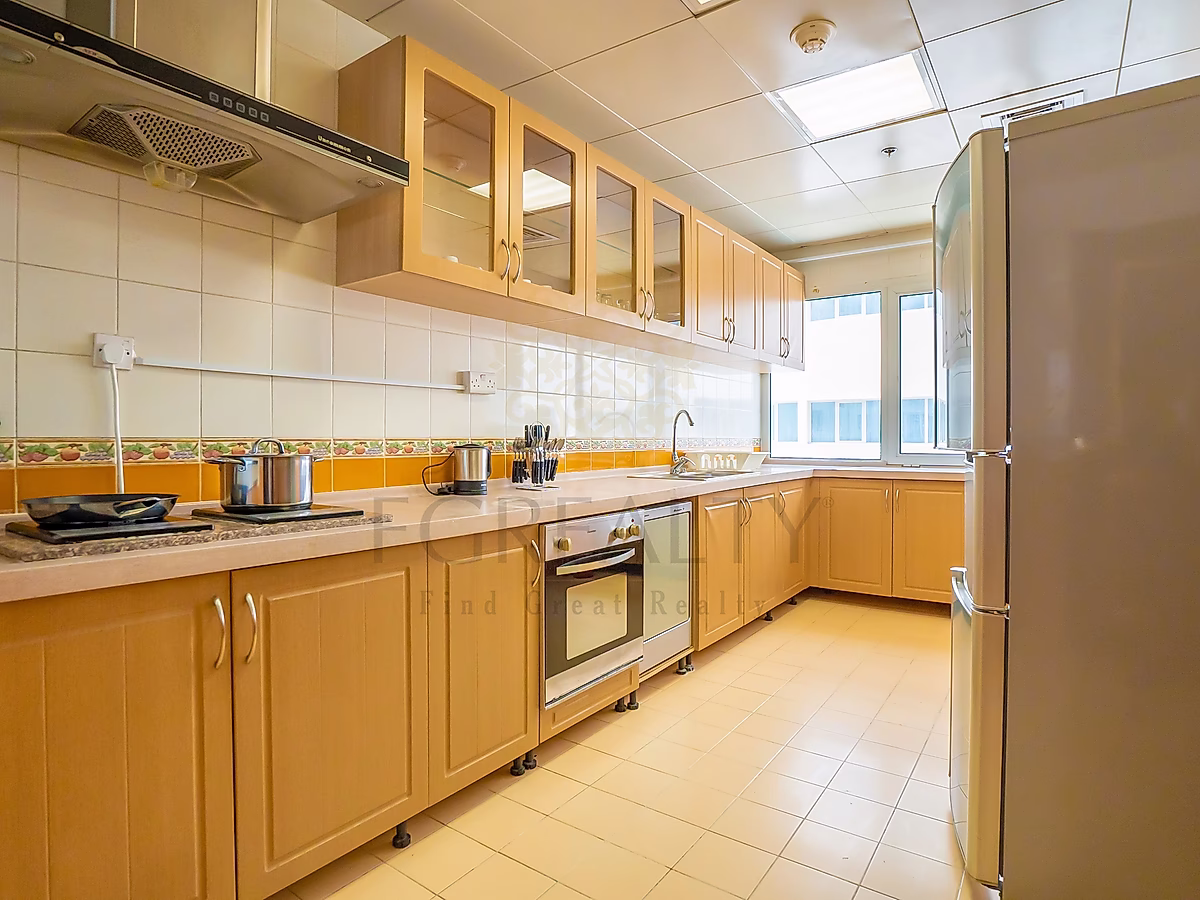 - مطبخ فاخر مزود بأجهزة عصرية وأسطح أنيقة.