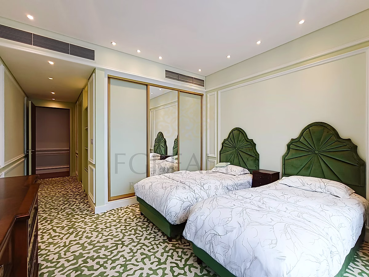 تتميز غرف النوم الثلاث بمساحات واسعة مع خزائن مدمجة، بينما تحتوي غرفة النوم الرئيسية على حمام داخلي (ماستر) يوفر مزيدًا من الخصوصية والراحة. كما توفر غرفة الخادمة راحة إضافية للعائلات. وتشمل الشقة أيضًا حمامات مصممة بعناية مع تجهيزات وتشطيبات عالية الجودة.