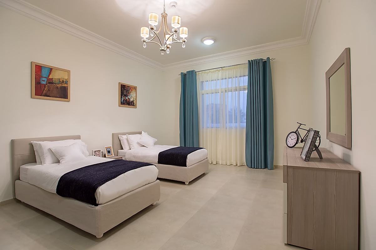 - ثلاثة حمامات مع حمامات (سريرين مفردين وسرير توأم)