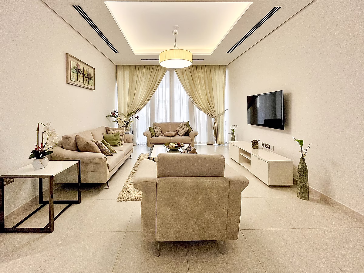 4 غرف نوم ماستر شبه مفروشة مع حمام داخلي غرفة للخدم مع حمام ملحق غرفة معيشة غرفة طعام مطبخ مفتوح مرحاض للضيوف غرفة غسيل حديقة