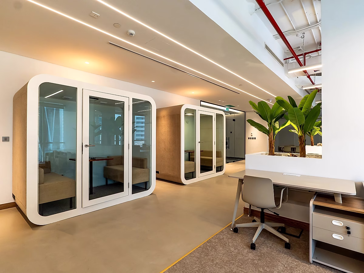 أثاث فخم | كبائن عازلة للصوت | جاهز للانتقال | مساحة عمل راقية