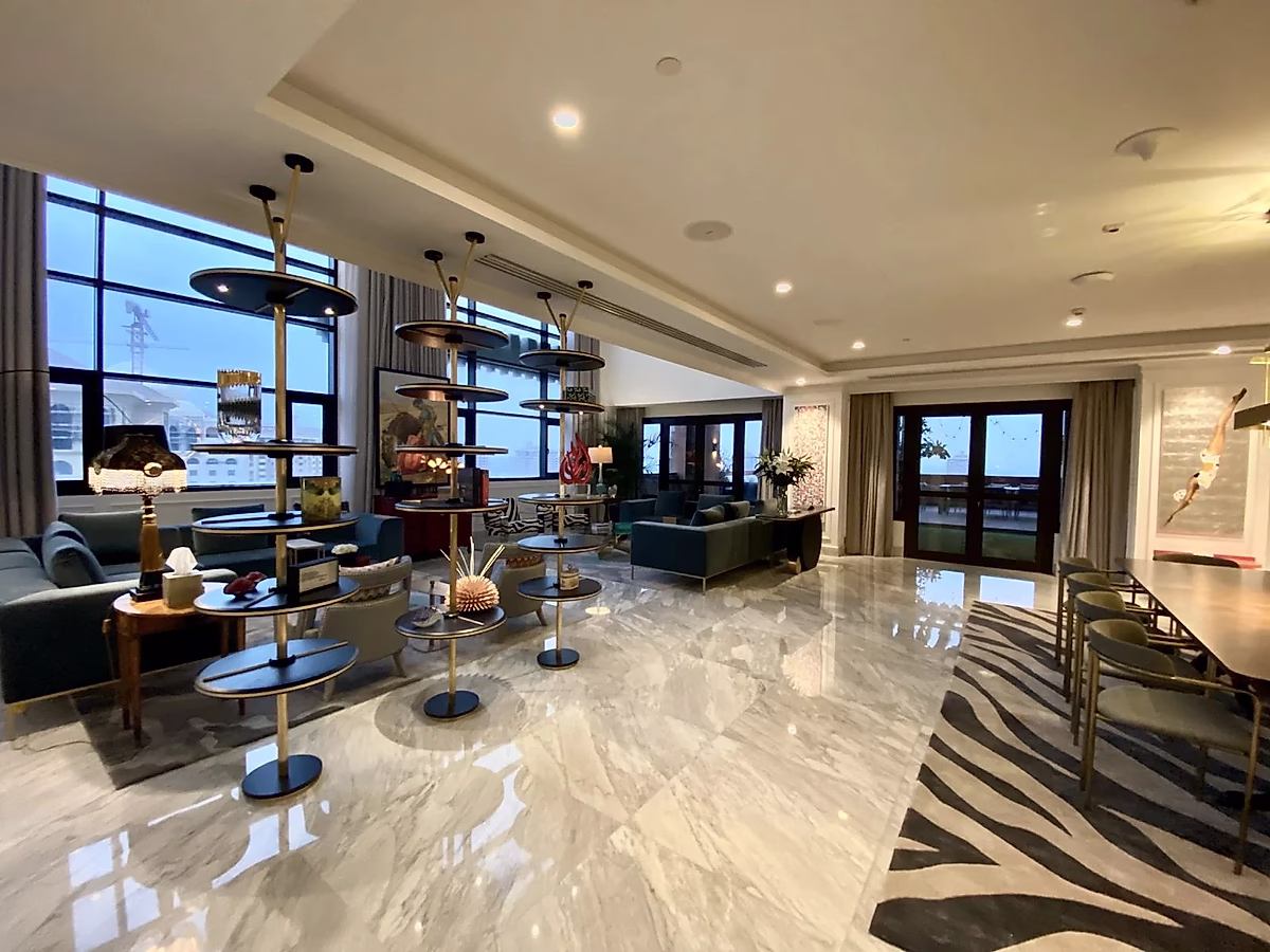 Measuring over 830 sqm.floor area, this residence boasts iconic and incomparable 360-degree views of Qanat Quartier, Lusail Skyline, Porto Marina and Kempinski Hotel.