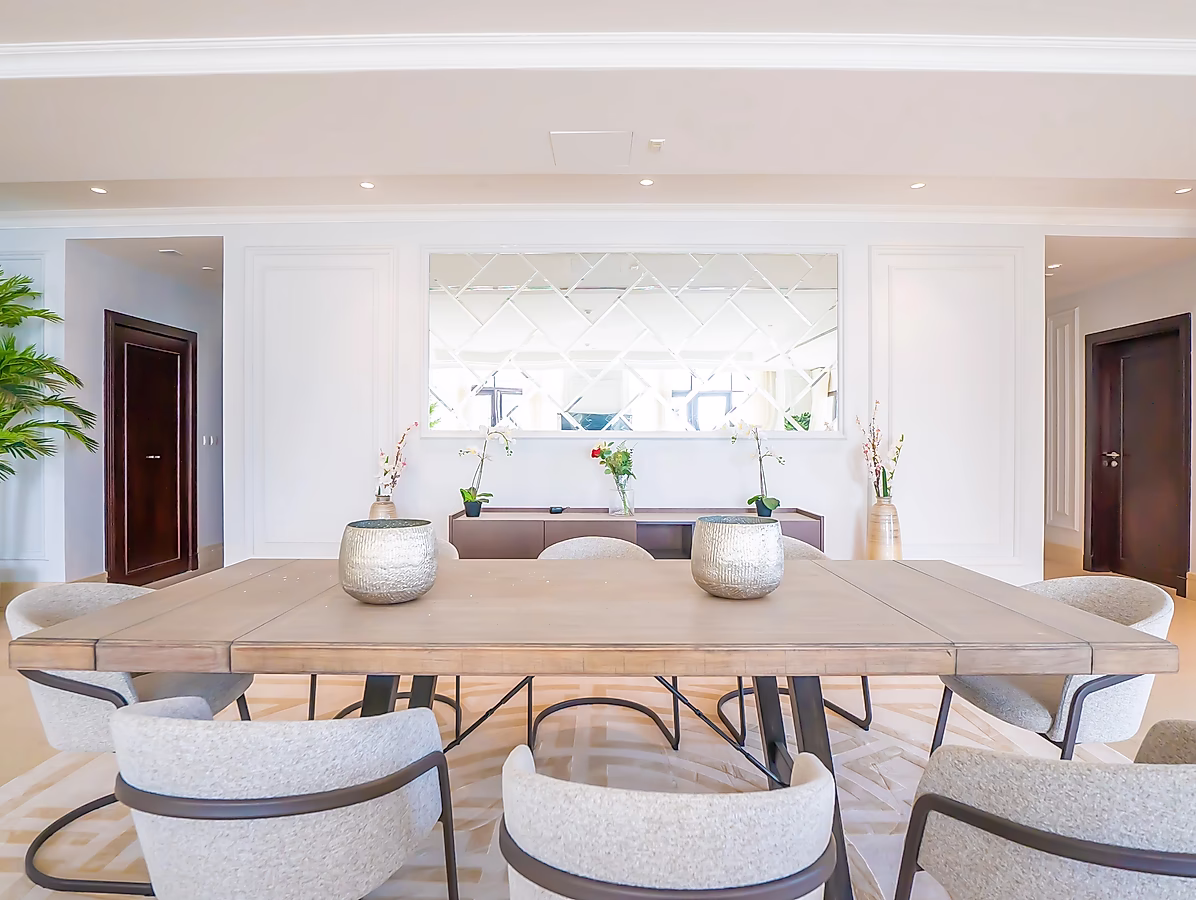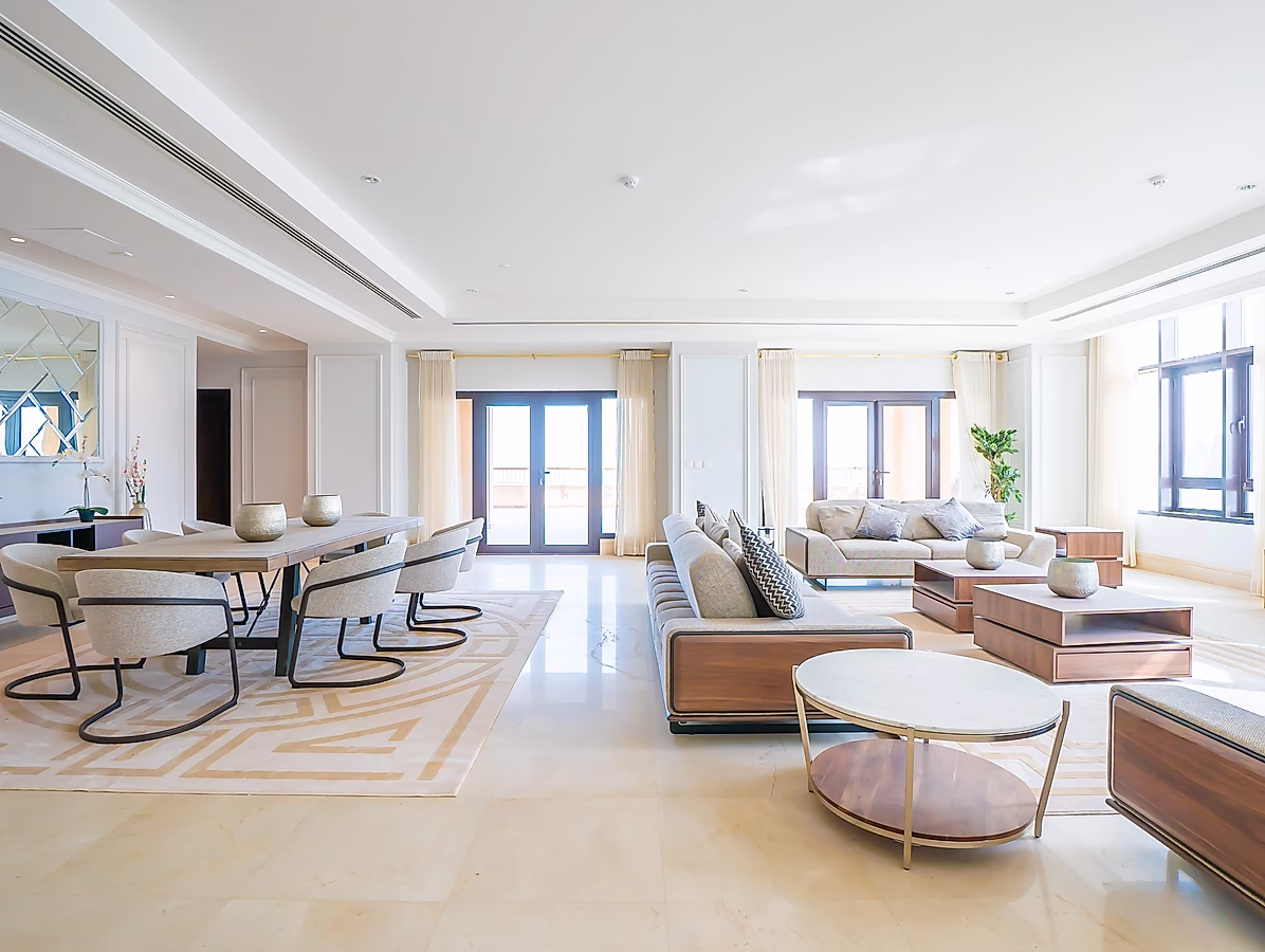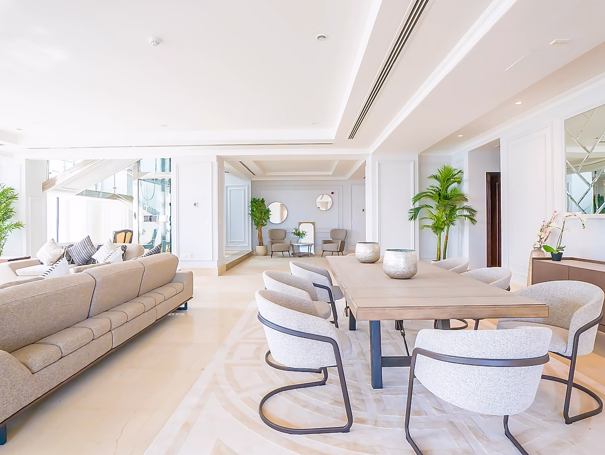 مع أربع غرف نوم واسعة، كل منها بحمام خاص، هذه الشقة مثالية للعائلات أو مجموعات الأصدقاء الذين يبحثون عن مساحة واسعة وخصوصية. غرف النوم مفروشة بأناقة بأسرّة وبياضات مريحة، مما يضمن نومًا هادئًا ليلاً.