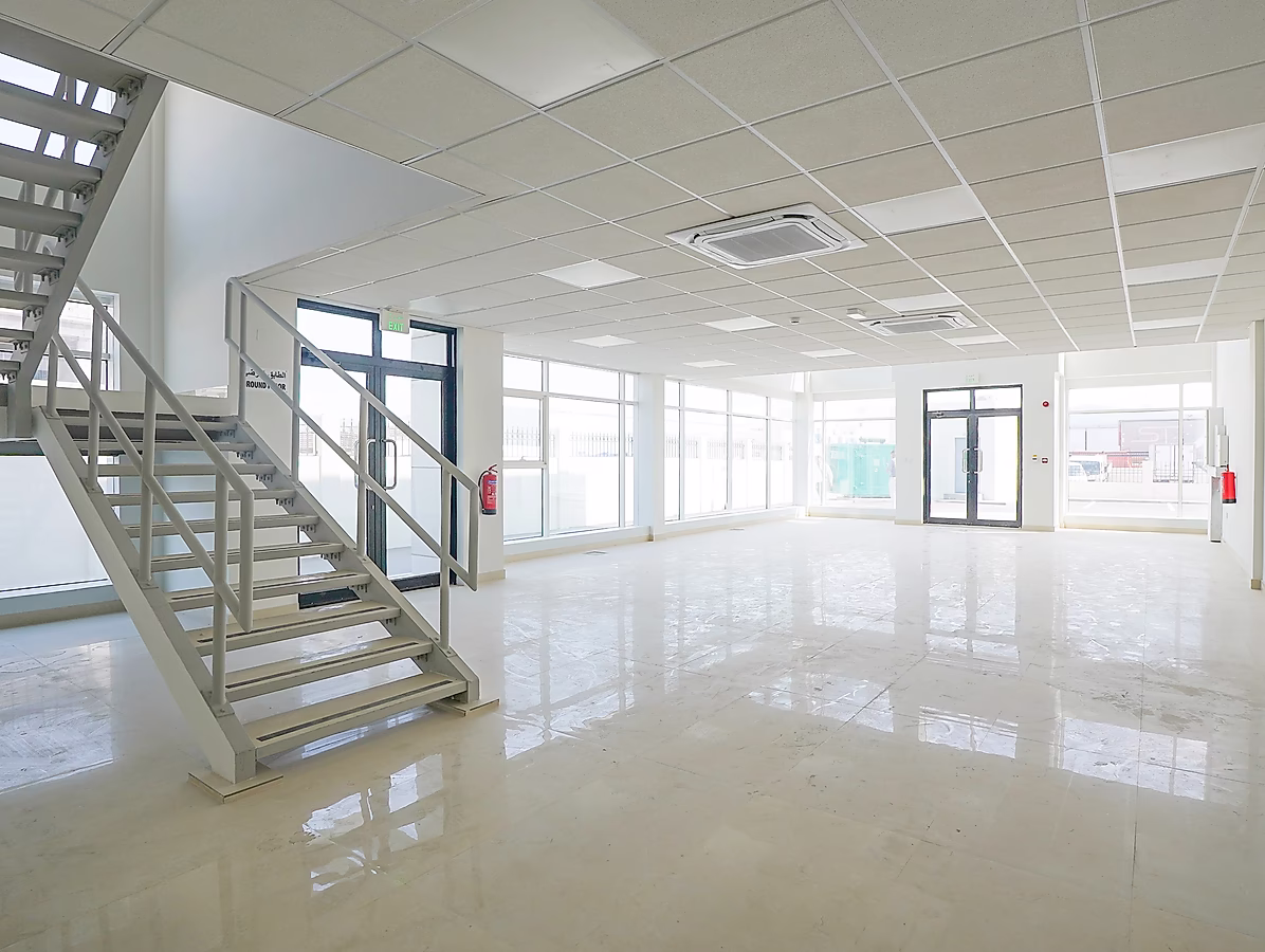 تعتبر هذه الخاصية متعددة الاستخدامات مثالية للشركات التي تتطلب مزيجًا من التخزين والعرض ومساحة العمل وسكن الموظفين. يوفر المستودع الرئيسي الفسيح بطابق الميزانين الخاص به سعة تخزينية كبيرة، بينما تسمح لك صالة العرض المخصصة بعرض منتجاتك للعملاء في بيئة احترافية. توفر المساحة المكتبية الكبيرة بيئة مريحة وعملية لفريقك.