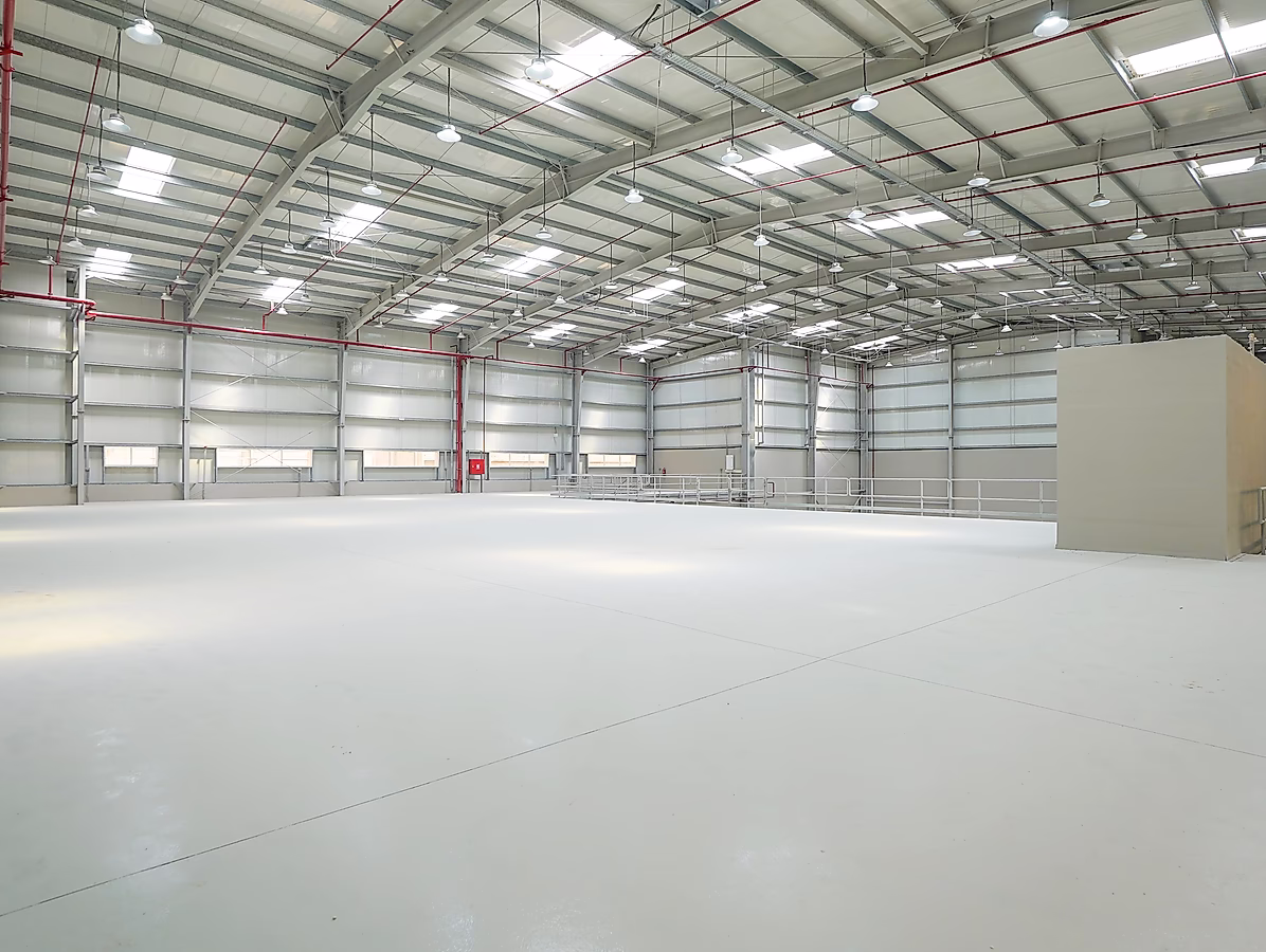 المستودع الرئيسي: 2680.5 مترًا مربعًا بطابق نصفي، مثالي للتخزين واسع النطاق