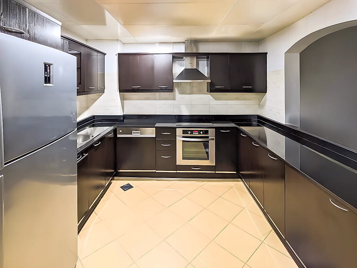مطبخ حديث ومنطقة معيشة واسعة