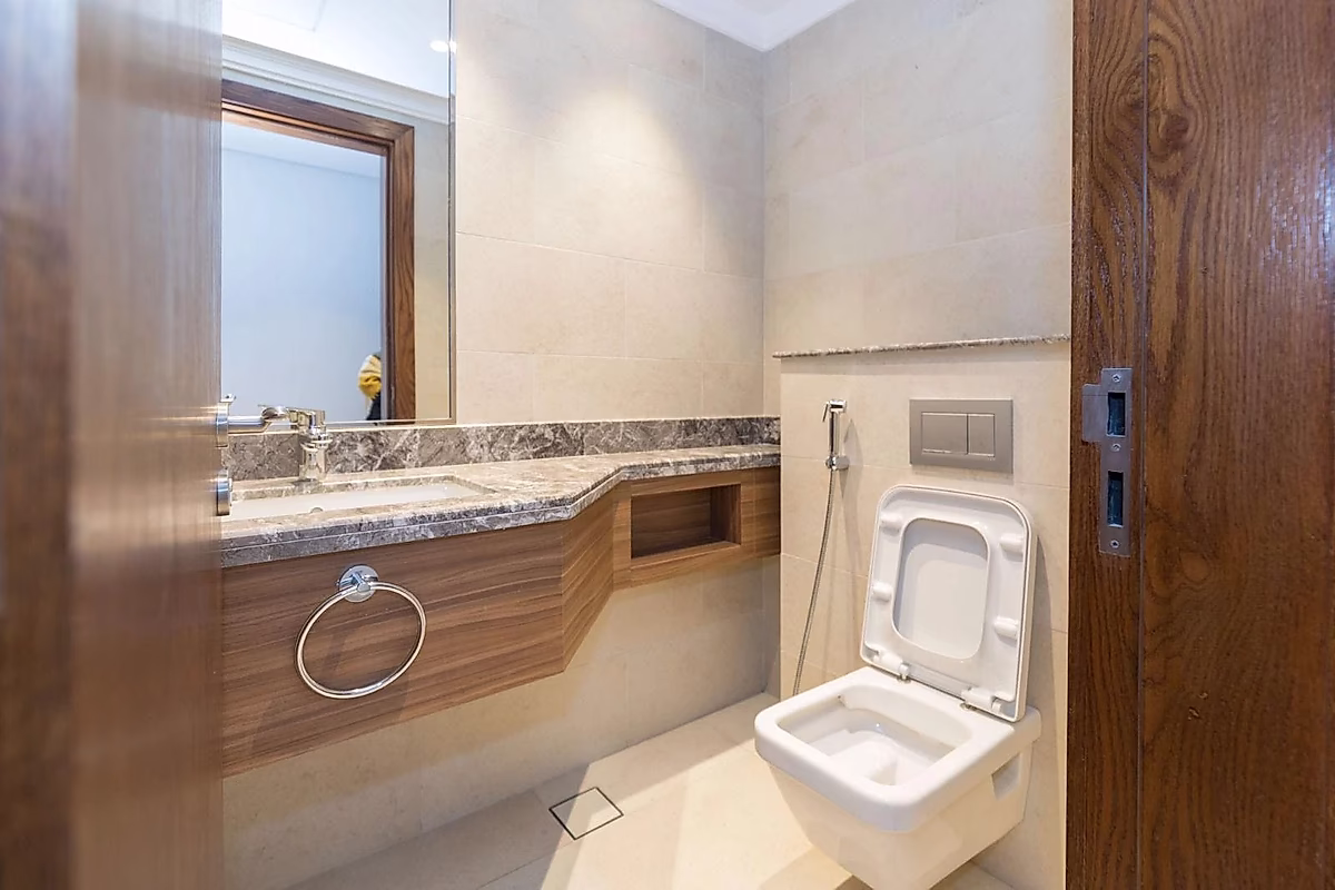 - حمام واسع بتشطيبات وملحقات فاخرة.