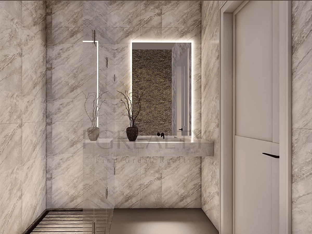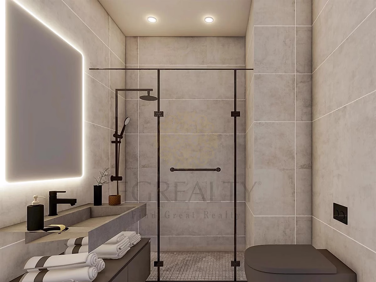 - حمام فخم يحتوي على تجهيزات عصرية