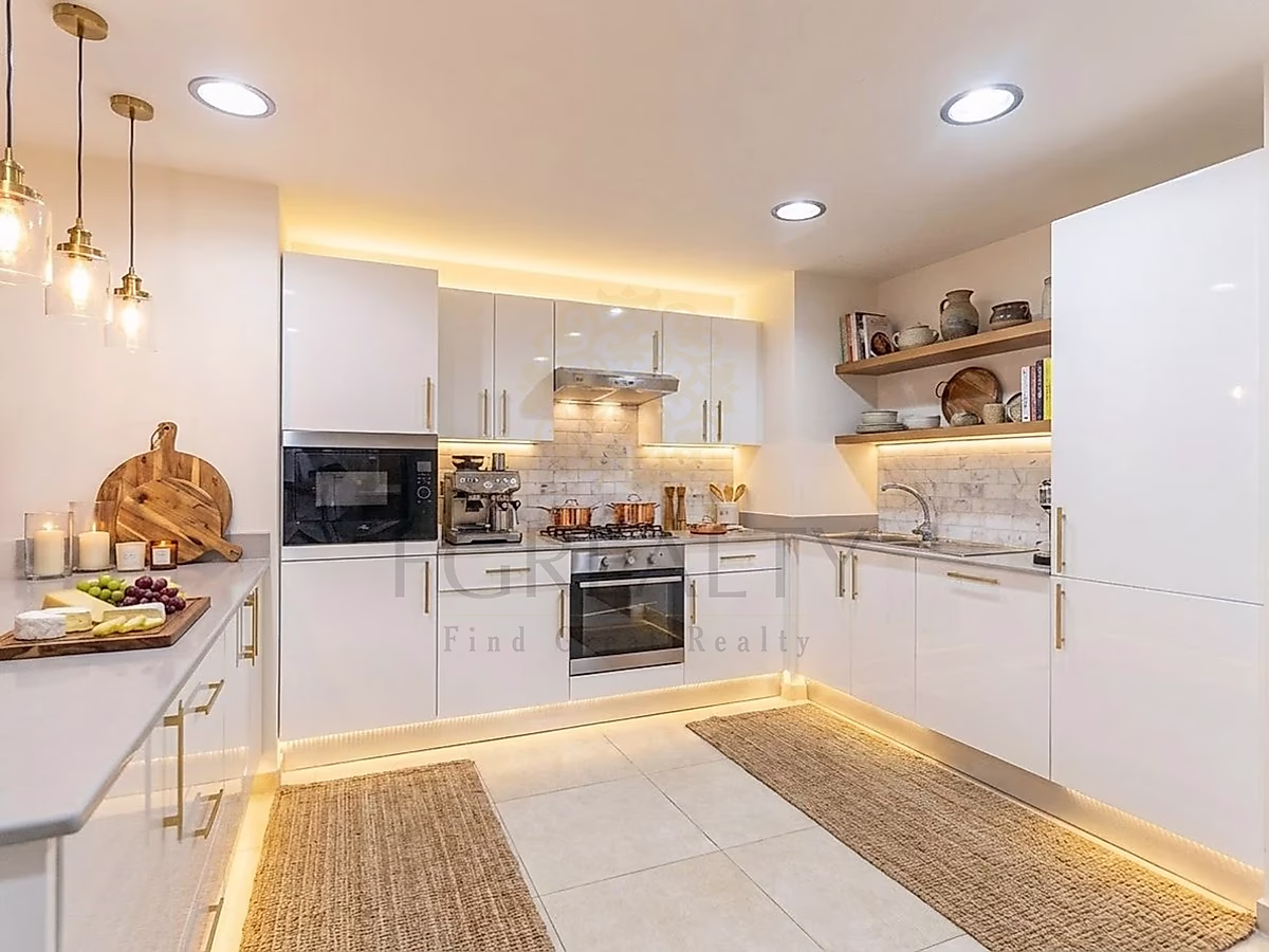 • مطبخ عصري مجهز بأجهزة عالية الجودة وتشطيبات أنيقة