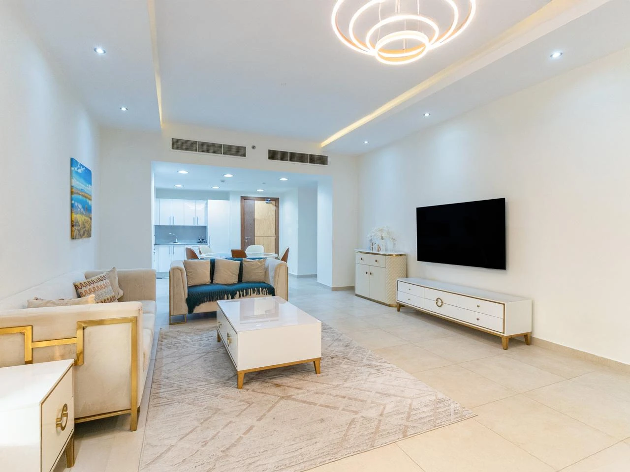تقع الشقة في الدور الرابع وتتميز بإطلالة بانورامية جذابة على فاندوم مول، مع إطلالة جزئية خلابة على جزيرة المها والبحر، إضافة إلى منظر فندق رافلز الأيقوني، ما يمنح الوحدة قيمة جمالية واستثمارية عالية.