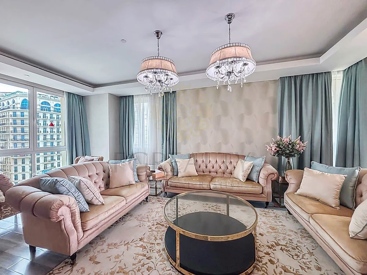 تتضمن الشقة غرفتي نوم فسيحتين، بما في ذلك جناح رئيسي مع حمام فاخر داخلي. الشقة مفروشة بالكامل بأثاث فاخر وعالي الجودة، مع تصميم داخلي أنيق يضمن تجربة سكنية جاهزة على الفور.