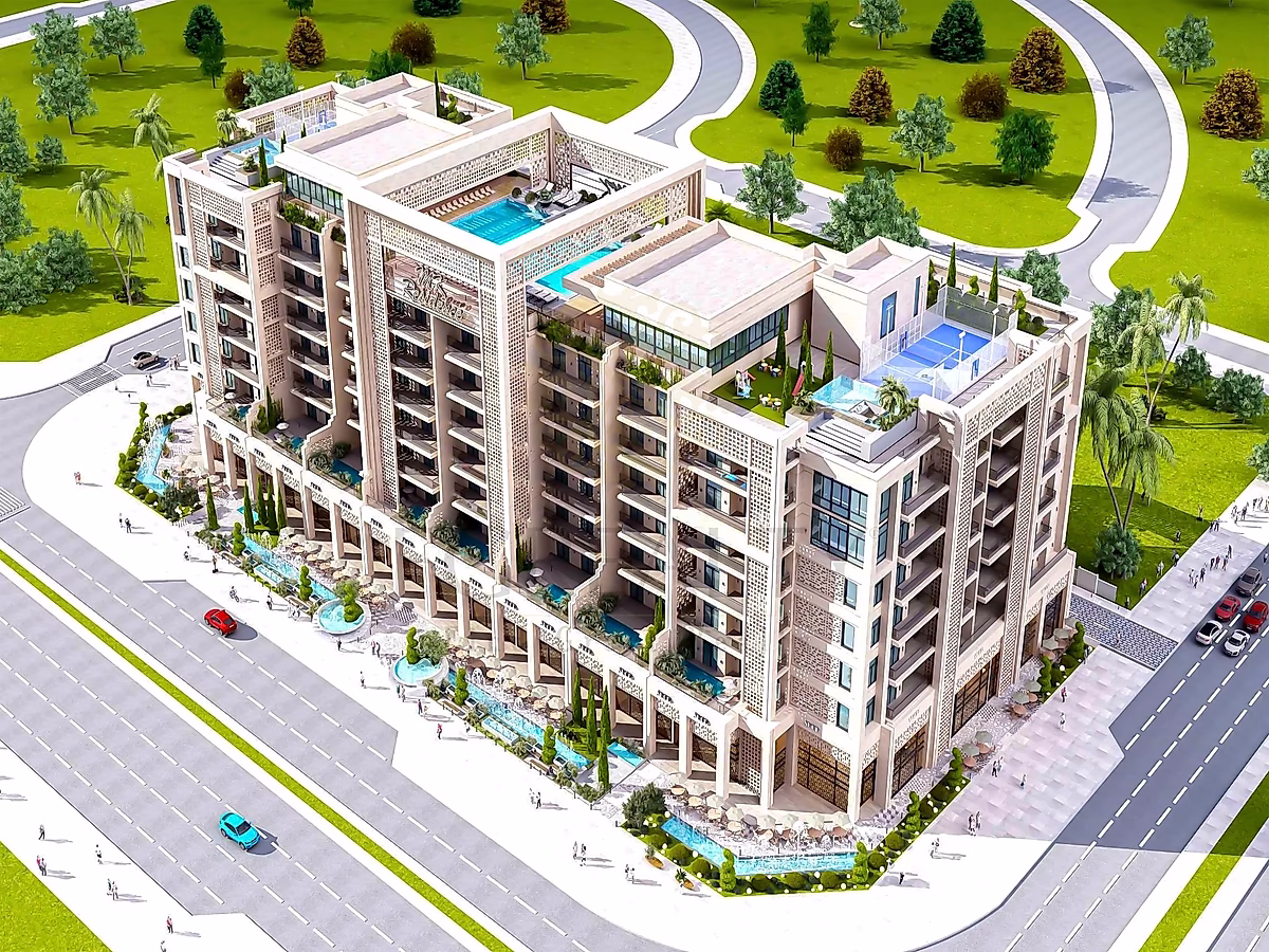 ستة طوابق سكنية تحتوي على شقق واسعة
