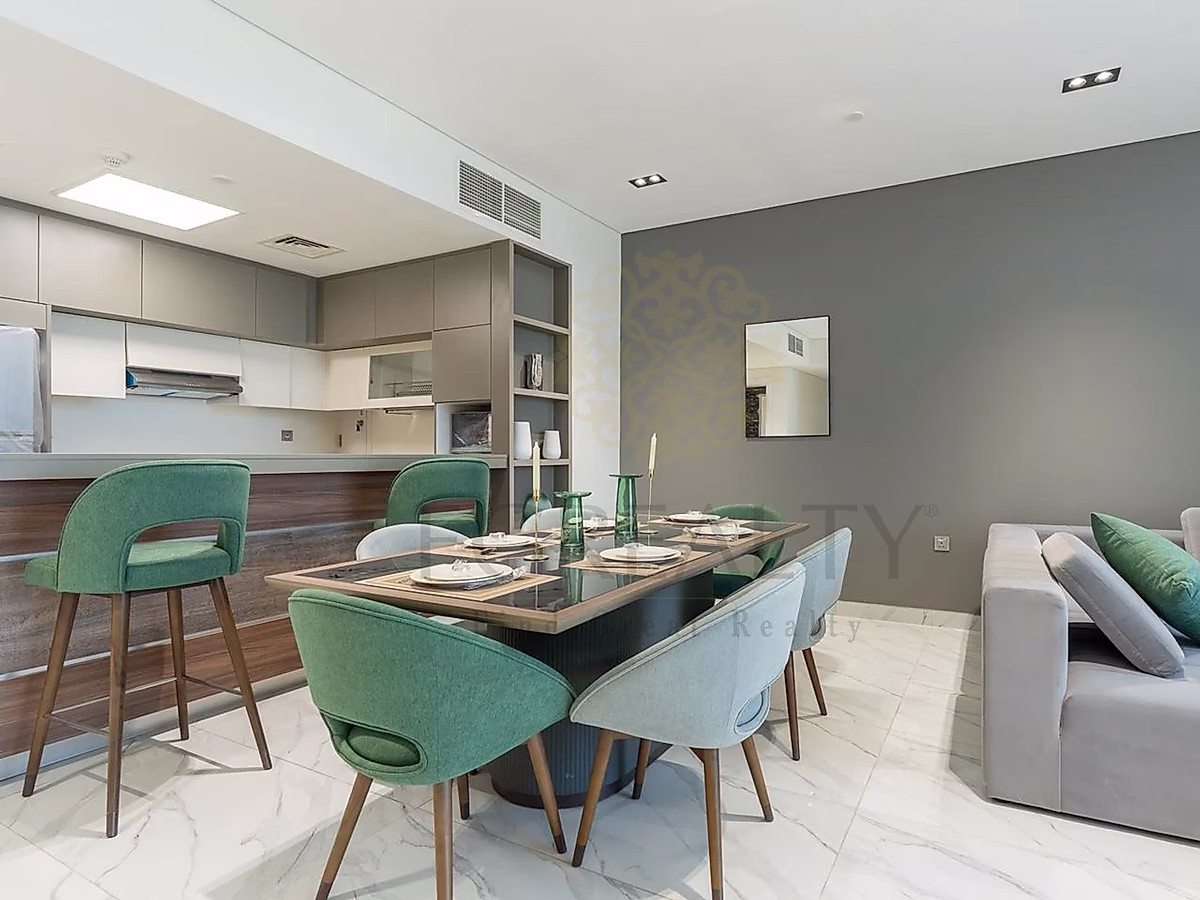 - مطبخ حديث مجهز بأجهزة عالية الجودة وتشطيبات أنيقة.