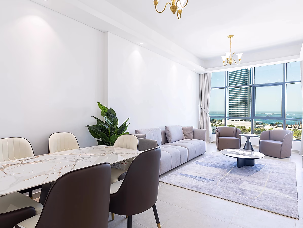 استمتع بالحياة العصرية | شقة مفروشة بالكامل بغرفتي نوم للإيجار في لوسيل