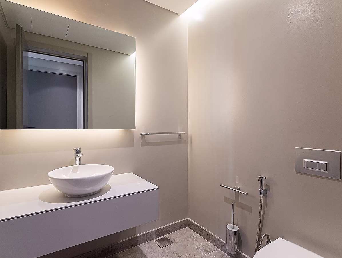 حمامات بتصاميم راقية وتجهيزات عالية الجودة.