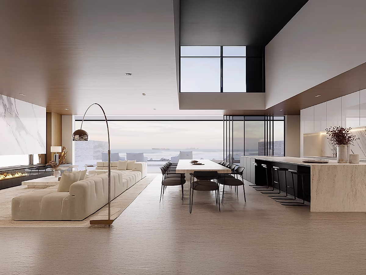 من لحظة دخولك، ستُبهرُك المساحات الداخلية الواسعة، والإضاءة الطبيعية الغامرة، والتصميم الانسيابي الذي يربط بين المساحات الداخلية والخارجية بانسجام تام نحو شاطئك الخاص.
