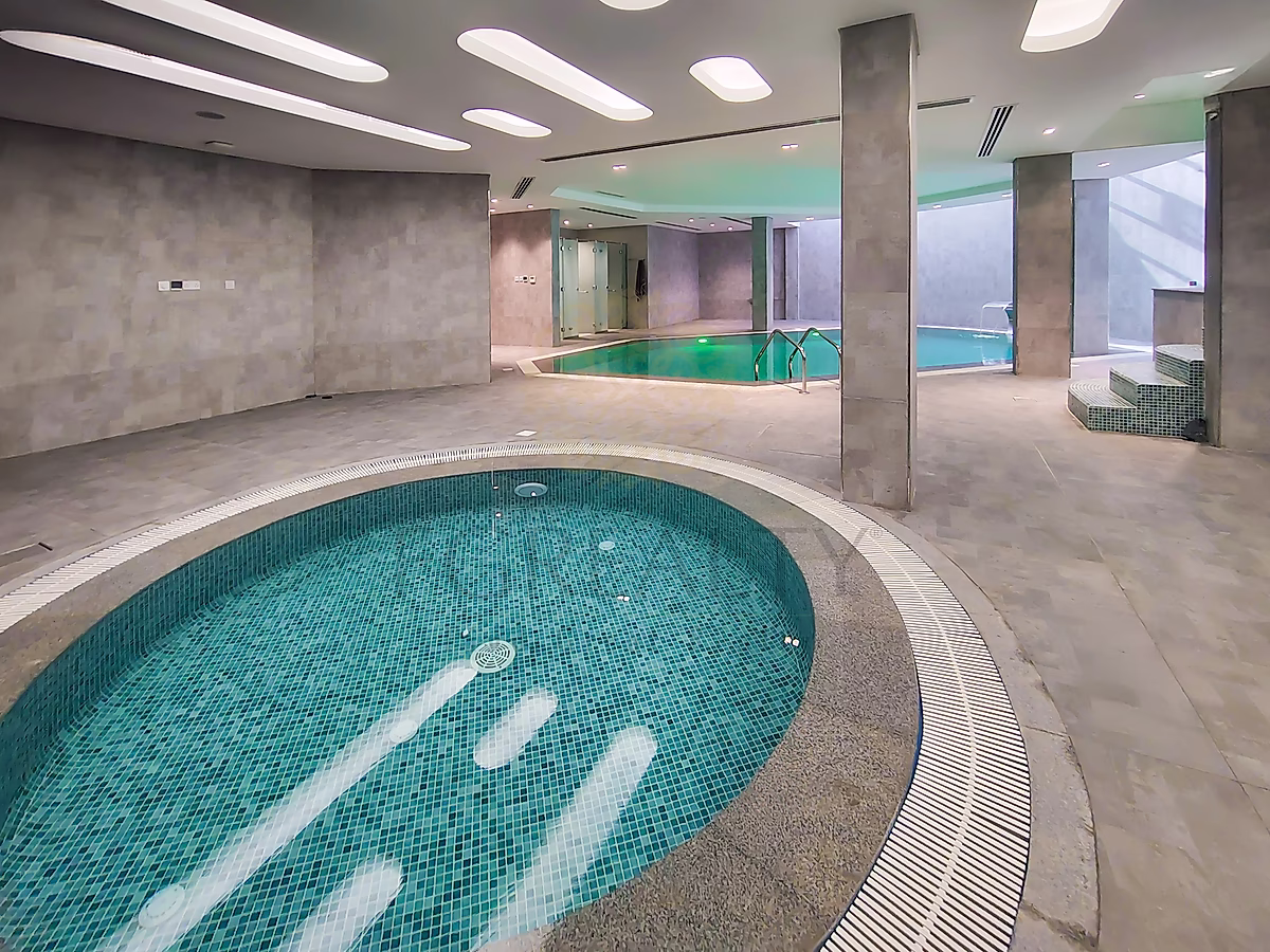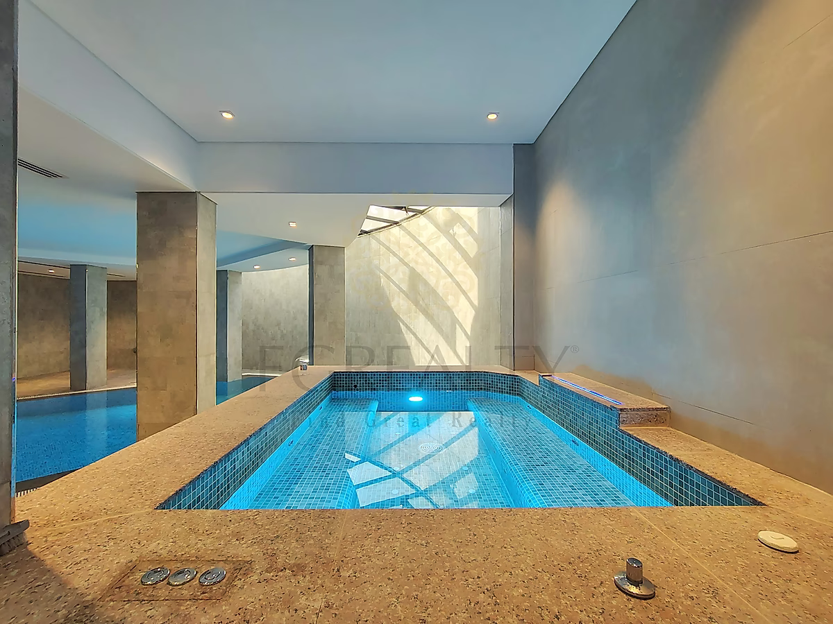 تتوزع الفيلا بعناية فائقة على أربعة طوابق: الطابق السفلي، والطابق الأرضي، والطابق الأول، والطابق العلوي (بنتهاوس)، مما يوفر مساحات معيشة واسعة مثالية للحياة العائلية والضيافة. يضم الطابق السفلي مسبحين خاصين، مما يخلق أجواءً فريدة تُشبه المنتجعات، قلّما تجدها في الفيلات السكنية.