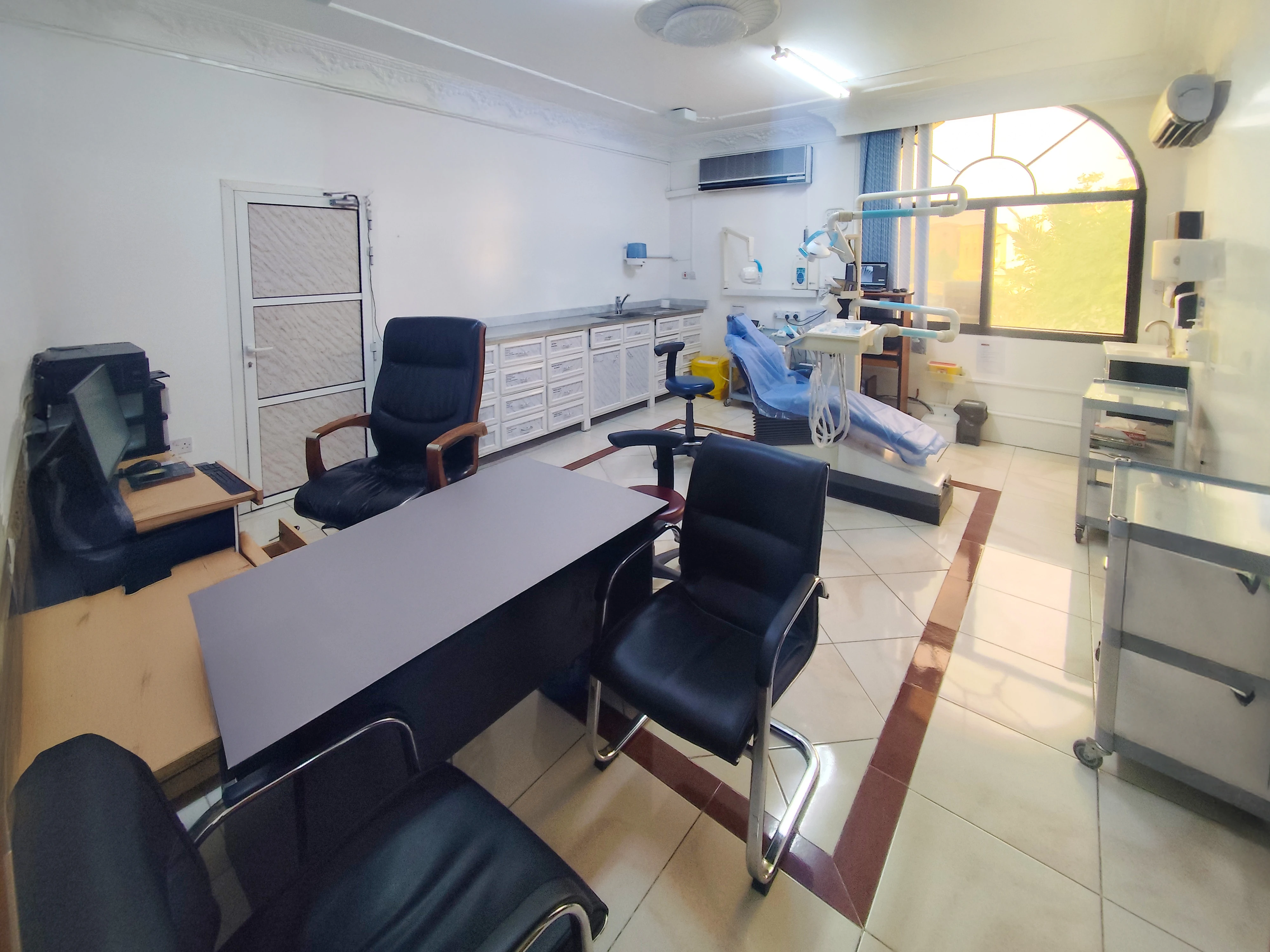 مبنى واسع يضم غرفًا كافية لتلبية جميع متطلبات مركز طب الأسنان.