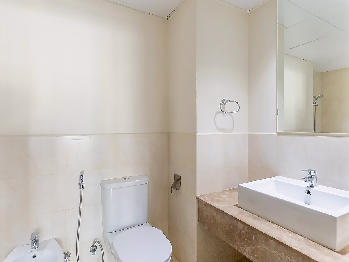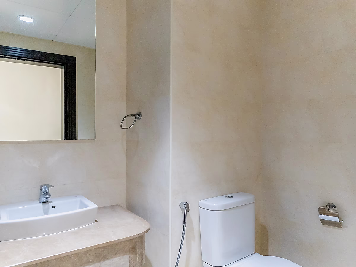 - Stylish bathroom boasting modern fixtures and premium tiling.