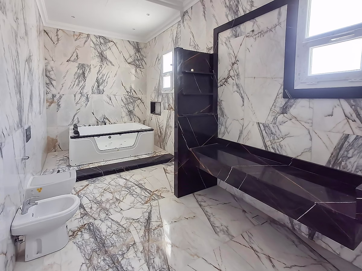 Discover the luxury of living in this magnificent standalone villa located in the prestigious area of Hazm Al Markhiya. This exquisite property boasts over 10 spacious bedrooms and 10 elegantly designed bathrooms, ensuring ample space and comfort for you and your family. Perfect for large families or those who love to entertain, this villa is a true gem in one of the most desirable neighborhoods.
