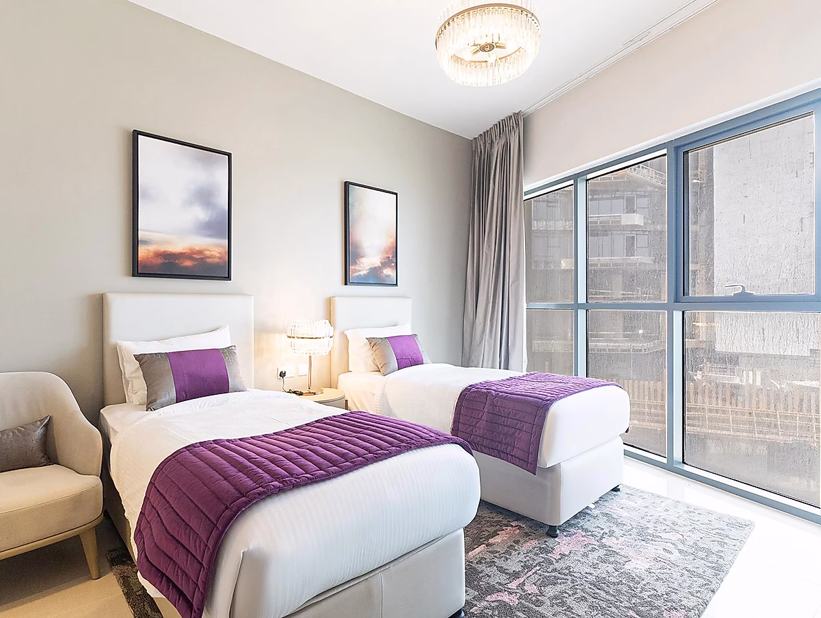 - Bedrooms: 2 spacious bedrooms, each equipped with built-in wardrobes for ample storage.