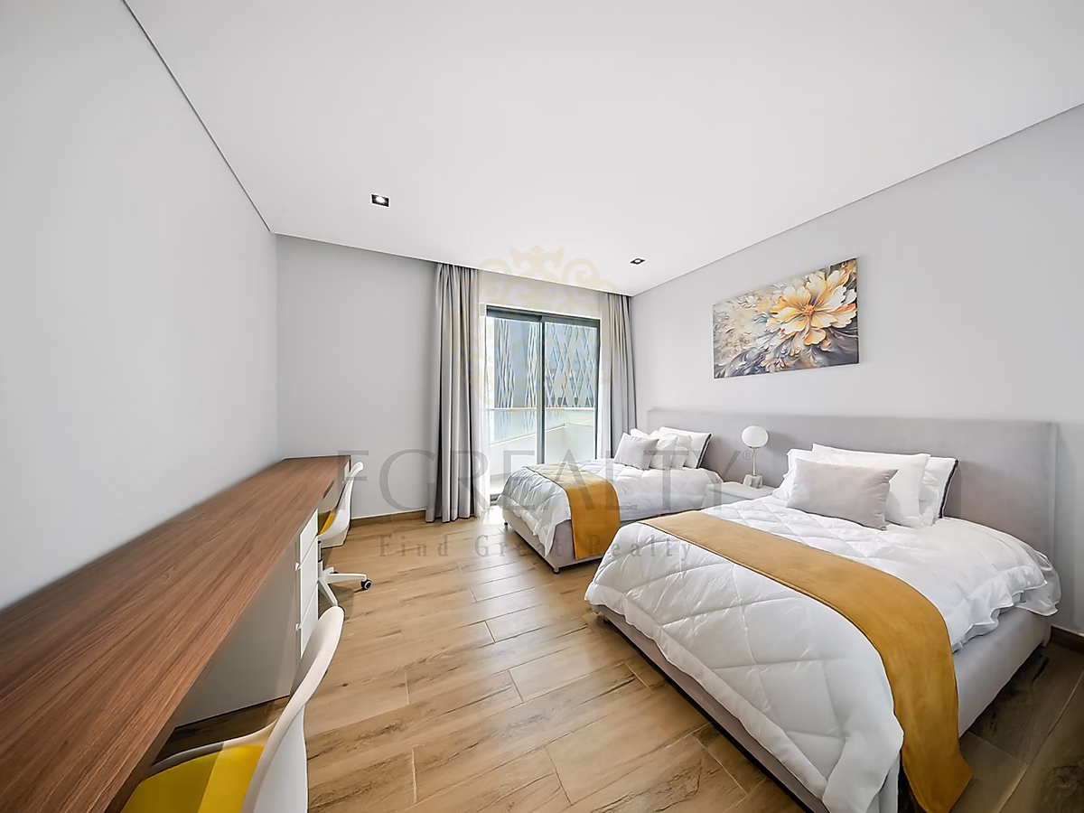 Both master bedrooms serve as peaceful sanctuaries, each featuring comfortable beds, ample storage, and stylish furnishings that create a relaxing retreat. The bathrooms are well-appointed with contemporary fixtures, offering a touch of everyday luxury.