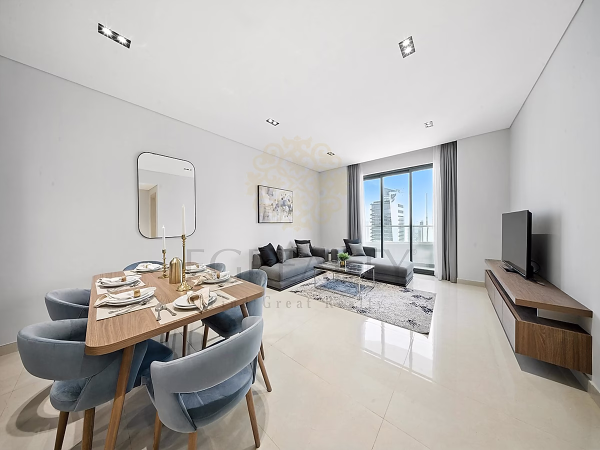 This cozy and fully furnished 2-bedroom apartment is thoughtfully designed with modern elegance and comfort in mind. The spacious living area is beautifully styled with tasteful furniture and décor, creating a warm and inviting atmosphere—perfect for relaxing or entertaining guests. Large windows allow natural light to flow in, enhancing the overall ambiance.