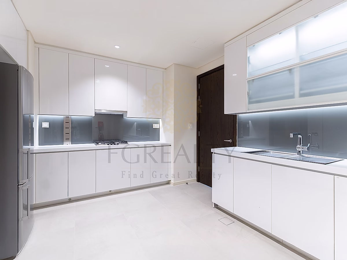 The apartment features a generously sized living area designed for comfort and entertaining, complemented by high-quality finishes and contemporary interiors. Floor-to-ceiling views showcase a stunning panorama of the sea alongside the iconic skyline of Lusail Marina, creating a truly unique and dynamic living experience.