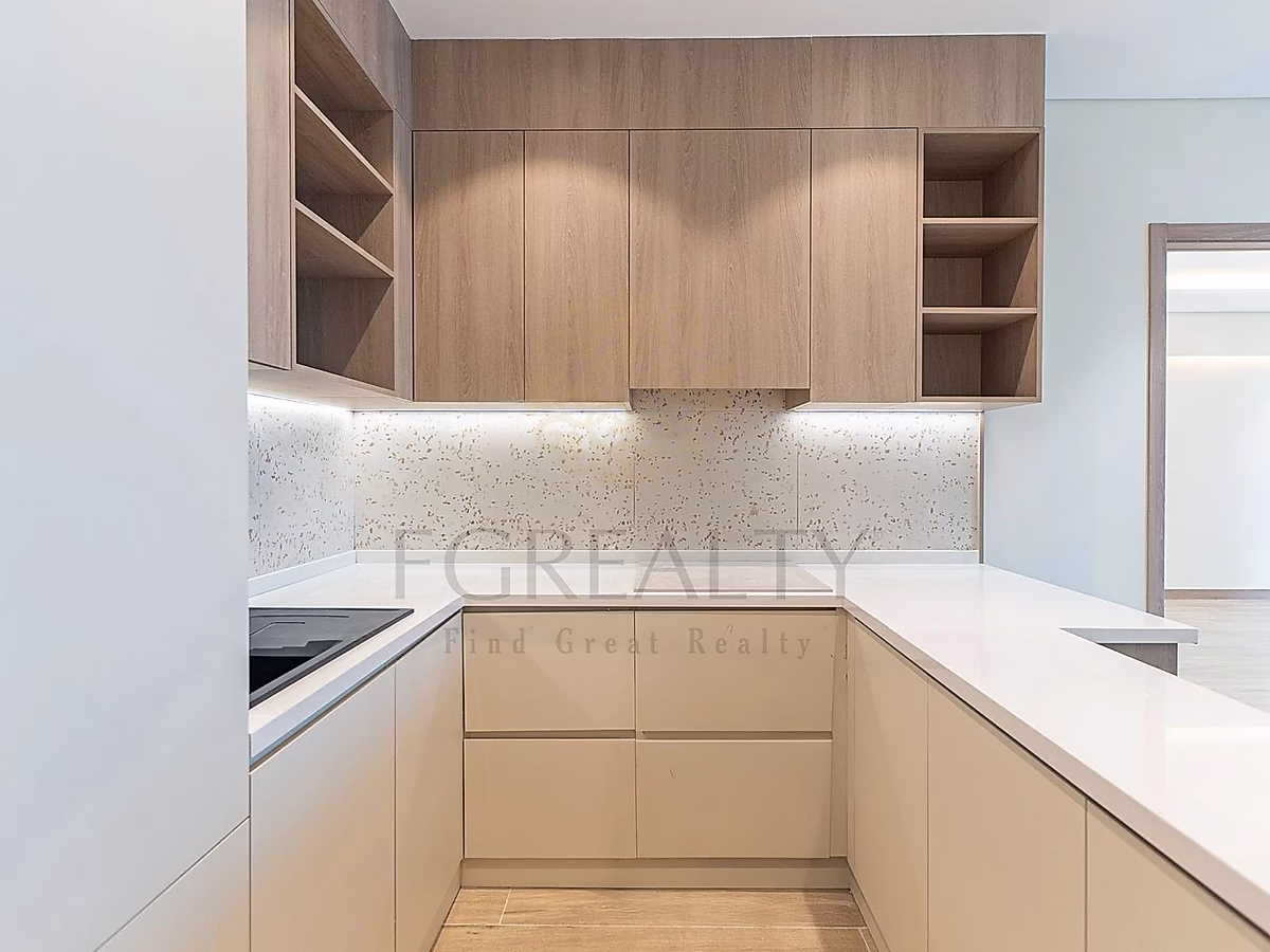 This beautifully designed apartment spans 125 sqm and features a bright open-plan living and dining area with floor-to-ceiling windows that maximize natural light and showcase stunning full sea views of the Arabian Gulf. The layout includes two comfortable bedrooms, a modern kitchen with high-quality finishes, and a private balcony where residents can enjoy the peaceful waterfront atmosphere.