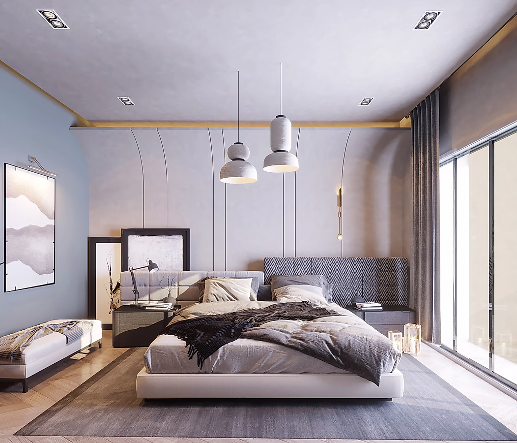 Spacious Bedroom with elegant design and natural light